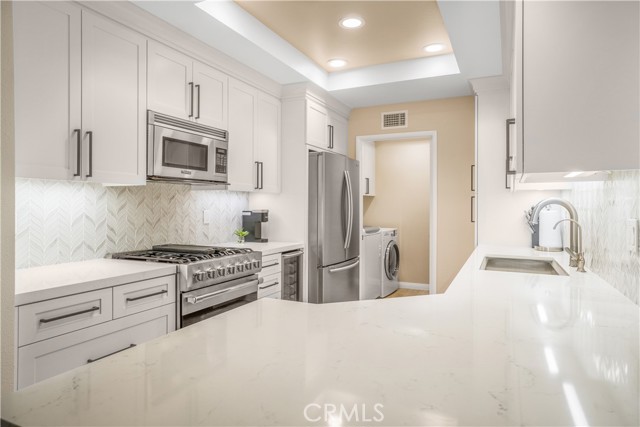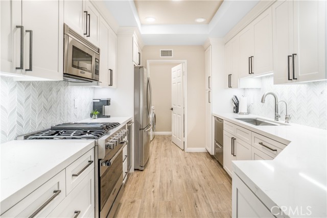 Welcome to this remodeled Plan C condo in the gated Bayridge community. Featuring soaring ceilings and French doors leading to a private balcony, this upper-level home blends comfort and style. The entire unit was fully remodeled in 2018. The kitchen has quartz countertops, white cabinetry, wine fridge, High-end stainless steel appliances, and a breakfast bar. Additionally, a reverse osmosis water unit is in kitchen - new unit just installed in 2024. The spacious primary suite includes vaulted ceilings, dual closets, and a luxurious en-suite with a walk-in shower and dual sinks. Additional info: in-unit laundry, A/C, attached 1-car garage and 1 detached garage, and access to community amenities. Close proximity to Fashion Island, Back Bay, dining, and the 73 freeway. Small dog considered - please inquire with details. Not furnished. To apply: https://apply.link/YUDgcWA