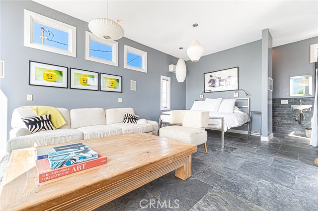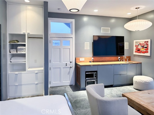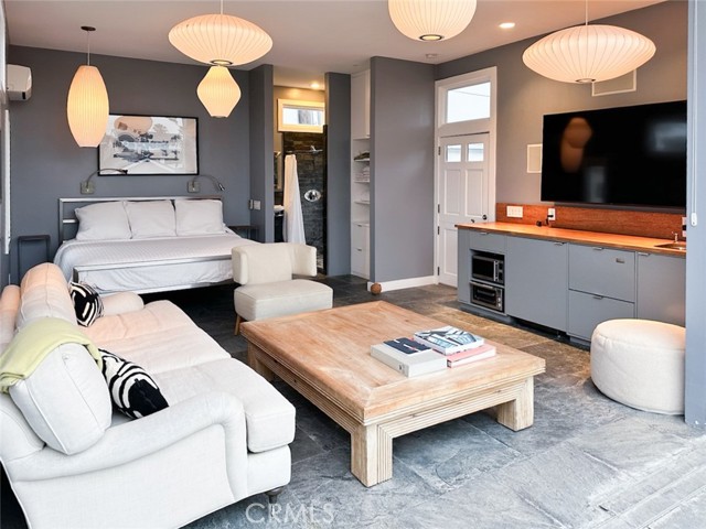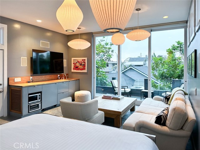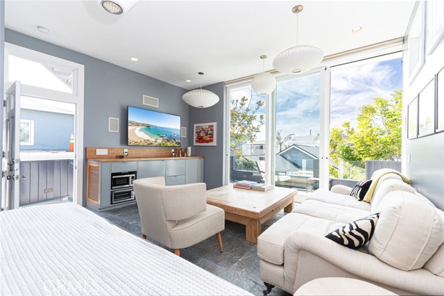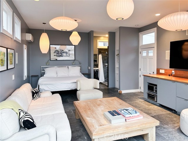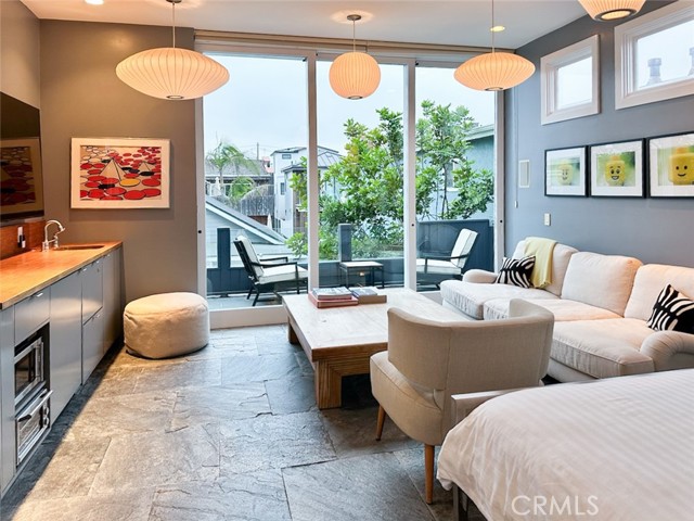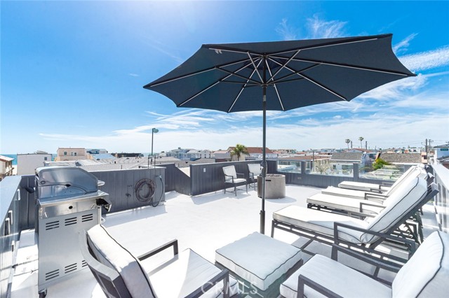 AMAZING SECOND STORY, BACK STUDIO UNIT WITH IT'S OWN PRIVATE ROOFTOP DECK, separate secure private off alley entrance, AC, just 5 houses separate you from the beach. Free water, power, trash, gas, high speed internet and Direct TV. Lido Marina Village is a short walk with it s chic shops and beautiful bay front restaurants. Exterior storage area for surfboards, bikes and beach chairs. The studio has 10-foot ceilings and a sliding wall of glass that opens to let the fresh sea air in. Available furnished or unfurnished. Currently furnished with a California King, there is an ensuite bath, mini fridge/freezer, dishwasher, sink, microwave, toaster/Air fryer oven, hot plate, 70-inch TV, balcony overlooking the yard and deck below and a 500 square foot rooftop deck with ocean/sunset views an outdoor shower, gas fire pit, stainless steel BBQ, umbrella and lounge furniture.