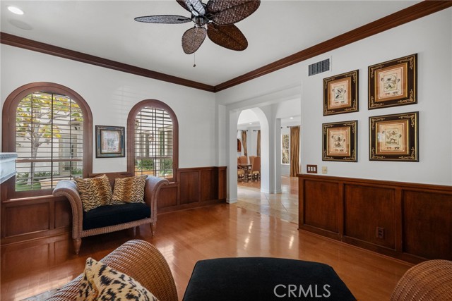 Welcome to 6 Boardwalk, an exquisite beauty located in the prestigious 24 hour guard-gated neighborhood of Bonita Canyon. The location of this home is at the end of a quiet cul-de-sac encompassed with a beautiful rose garden. The only house on the market for lease in this price range with over 5000 sq ft. 4 bedrooms, 2 offices , 5.5 bathrooms & gym. A 4 car garage with a courtyard that could accommodate 3 or 4 additional cars. The courtyard also features a water fountain & fire pit. A separate single car garage converted into a private office for those who need the segregation but still work from home. When you walk in the front door the formal living room which comes with a piano, dining room table and chairs is on your right and on your left is the library with custom built ins and a fireplace. The grandeur hallway leads you to an open concept kitchen, breakfast nook, breakfast bar, butlers pantry & family room. The kitchen includes top of the line Viking & Sub Zero appliances, granite counter tops, marble flooring and an abundant amount of custom wood cabinets and built ins through out. Need a downstairs room for an in-law or caretaker? This home offers that with private bathroom and private entry from the backyard. The second level east wing has an unbelievable master suite with it's own "his & hers" bathrooms, wardrobe and romantic fireplace. His bathroom includes a steam shower & attached home gym with equipment included. Hers includes a soaking tub, marble shower & custom vanity. The bedrooms in the west wing have an attached office or playroom and balcony with a view of the lush landscape. Speaking of landscape the backyard was just completed with it's own putting green. The beautiful backyard features a fountain that is surrounded by additional rose gardens making the ambiance feel like Home and Garden Sunset magazine! The community offers premier amenities including a junior Olympic sized pool, playground, picnic area, tennis court and of course the 24 hour guard gated security. Just minutes from the 73 toll road, 55 fwy, Fashion Island and famous Newport Beach. Walking distance to church of Latter Day Saints, Newport Beach California Temple, Bonita Canyon sports pack athletic field, Bonita Canyon Pickle Ball court and Newport Hills shopping center.Interested in this Listing?