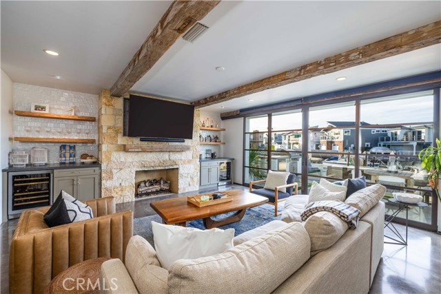 Are you ready to live the Newport Beach lifestyle? Then look no further as this is the home for you! Located on the canals of the world famous Newport Beach harbor, this incredibly beautiful, fully furnished, waterfront home features 4 bedrooms and 3 baths all in 2348 sq ft of living space! Remodeled from top to bottom in 2015 and designed by renowned architect Bradford C Smith, you will immediately notice the reclaimed oak wood beamed ceilings and polished concrete floors which outline the spectacular views (behind disappearing pocket doors) of your outdoor oasis featuring custom decking, built-in BBQ, firepit, and private dock sitting on sparkling sea water! The Chef's kitchen features stainless steel appliances, double ovens, dual sinks, a wine fridge, neolith countertops, limestone walls, and reclaimed American oak hardwood floors. A central great room includes a stone fireplace mounted with TV, custom dry bars and room for full dining table. The first floor also features a full bedroom and bath complete with floor to ceiling tiled shower and dual basin sinks. The second-floor Master suite includes custom stone fireplace, walk-in closet, and covered balcony (with custom wood paneled walls and ceiling) with fabulous sunset and canal views! The spa like master bath features dual sinks, floating tub, and walk-in shower. The second level also features a custom loft, two additional bedrooms, an additional bath, and laundry area. The large 2 car garage features Western Red Cedar, storage, bicycles and more! Walking distance to the white sands of Newport Beach, Lido Isle landmarks, water sports, shopping, restaurants and more!
