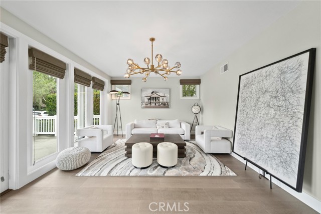 Situated on a prime oversized corner lot in the guard-gated community of One Ford Road, this completely reimagined Balboa Plan 1 is the epitome of sophisticated coastal living. Every detail of this approximately 2,500-square-foot residence has been thoughtfully curated, combining timeless elegance with modern luxury. Step inside through a charming Dutch door entry and into a light-filled interior showcasing wide plank hardwood flooring and an impressive formal living room with a striking floor-to-ceiling imported stone fireplace. The gourmet kitchen is a true showpiece, outfitted with brand-new Thermador appliances (including a six-burner gas range and wine refrigerator) an oversized island with bar seating, custom cabinetry with floating shelves, and designer fixtures throughout. The kitchen opens seamlessly to an inviting family room with custom California Closets built-ins and French doors leading to a fully renovated outdoor entertaining space. The exterior has been transformed with new landscaping, hardscape, and an expansive patio designed for hosting or relaxing in style. Upstairs, the expansive primary suite offers a tranquil retreat with a custom walk-in closet by California Closets, complete with integrated lighting, and a spa-inspired bathroom with floating tub and elegant finishes. Two additional bedrooms and a stylishly updated guest bath complete the second level. Additional highlights include Restoration Hardware chandeliers and fixtures throughout, epoxy-coated garage flooring with custom built-in cabinetry, a new AC unit, new tankless water heater, and is offered for lease fully furnished from Restoration Hardware for a seamless, move-in ready experience. Enjoy all the lifestyle amenities One Ford Road is known for two swimming pools, a state-of-the-art fitness center, croquet lawn, putting green, playground, sport courts, community events, and more all just minutes from the best of Newport Beach.Interested in this Listing?