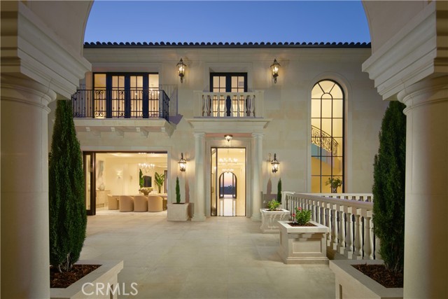 Crowning a coastal hill at the end of a private cul-de-sac behind double gates of the exclusive Estate Collection at Crystal Cove, this brand-new (2023) custom home is located on one of the most coveted streets in all of Newport Coast. Recalling the timeless prestige of a classic northern Italian villa, the grand residence is carefully positioned to capture breathtaking views. Impressive indoor and outdoor living areas frame panoramic vistas of the Pacific Ocean, Pelican Hill Golf Course, Newport Beach's harbor and channel, a verdant canyon, and romantic sunsets. First impressions are incomparable, with an oversized gated entry courtyard overlooking a lower-level courtyard and providing a private space for outdoor socializing, welcoming guests, and relaxing as the sea air refreshes. Served by a commercial-grade Garaventa Lift and highlighted by a stunning iron spiral staircase, the three-level residence embraces appx. 4,090 SF of balconies, decks, and courtyards, and appx. 11,765 SF of interiors which host seven en suite bedrooms and eight full and three-half baths. Enrichments include generously proportioned formal living and dining rooms, an office, wine cellar, 15-seat home theater, gym, maid's suite, guest house with private entrance, a secondary primary suite on the main level, and a subterranean garage spanning appx. 4,763 SF that can fit up to 15 cars. Calacatta marble flooring continues from living areas to a chef-inspired kitchen with top-of-the-line appliances, an oversized island, calacatta marble countertops, loggia, butler's pantry, and breakfast room. The primary suite opens to a covered ocean-view loggia and reveals an enormous walk-in closet, stone fireplace, espresso bar, and a luxurious five-star bath. Cantera limestone imported from Spain embellishes the exterior, while the interior offers Venetian plaster, Albertini windows and doors, book-matched Carrara marble, glass pocket doors to the outdoors, and custom alder cabinetry. Sparkling lights shine after dusk and lend enchantment to a massive vanishing-edge pool with glass tile, a fireplace-warmed cabana, loggias, large patios, and a built-in outdoor kitchen with a BBQ.Interested in this Listing?