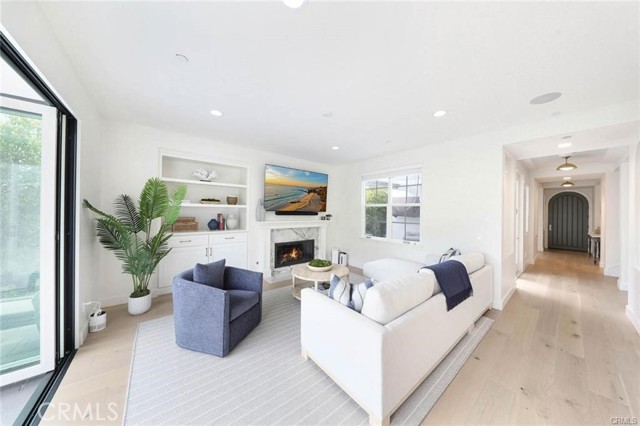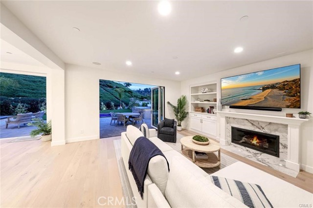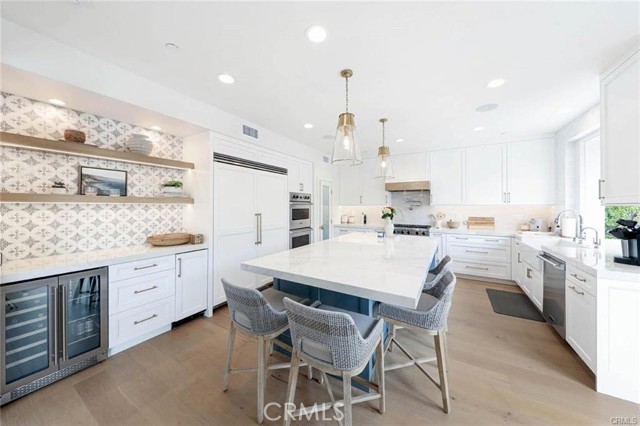 Designers Dream! Located at the end of a cul-de-sac in the 24-hour guard-gated community of Provence in Newport Ridge North, this beautifully remodeled home offers elegance and comfort. Recent renovations feature light oak flooring throughout. Outdoor enhancements include new AC/heater units, a waterless hot water heater, new pavers in front and back yards, and a custom 12x12 spa. The landscape has a new lemon tree, artificial turf, a new drainage system, and a custom-built fountain with landscape lighting. The outdoor area also boasts a BBQ with a concrete top, purified water spout, beverage refrigerator, and gas fire pit. An electric pass-through kitchen window and La Cantina bi-fold doors create seamless indoor-outdoor living. An outdoor shower with custom tiling, newly painted trim, and a refurbished balcony off the master bedroom complete the outdoor space. Indoors, the kitchen has a custom-paneled Viking double refrigerator/freezer, double Viking ovens, a warming drawer, microwave, and new beverage center with a Marvel ice maker and wine fridge. An oversized island, new custom kitchen cabinets, and a custom range hood enhance the space. Modern features include a new Viking dishwasher, two marble remote gas fireplaces, new engineered wood flooring throughout, and 4.5 custom bathrooms with en-suite bathrooms. All doors, knobs, and downstairs piping have been replaced. The new laundry room and garage have custom cabinets and bike racks. High-end finishes and LED lighting complete the extensive renovations. Residents enjoy access to private tennis courts, a large park, a children's playground, and a Jr. Olympic pool with a spa and picnic areas. Experience luxury living in a secure, vibrant community with top-tier amenities.Interested in this Listing?