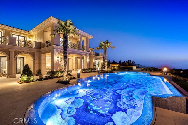 Commandingly perched atop one of Southern California s most desirable parcels of land, this custom designed crown jewel securely nestled at the pinnacle of Crystal Cove offers unobstructed views of The Pacific Ocean, Catalina, white water, Newport Harbor, Palos Verdes all the way up to Los Angeles. Resting atop a 26,600 sqft parcel, this 15,500 sq ft. estate with 3,640 sqft of decks and loggias spared no expense with the materials selected including bespoke chandeliers, interior and exterior white Jordanian marble floors and floor to ceiling onyx walls. An elaborate foyer showcases the only glass dome of this magnitude in a residence in the United States. Additional first floor areas include a dramatic office/library with spectacular ocean views, formal and informal living rooms with white oak flooring, en-suite guestrooms, a grand formal dining room with expansive wine cellar, gourmet SieMatic chef s kitchen, a second fully equipped prep kitchen and an outdoor kitchen. The primary suite is a grand, oversized room enhanced with custom cove ceilings, kitchenette, fabricated walls and gorgeous ocean views. There are two enormous spa-inspired bathrooms with heated marble floors, Kohler Numi toilet and bidet, oversized glass showers and a Jason soaking tub. The two walk-in closets are exceptional and reminiscent of the finest luxury department stores. The property provides an impressive entertaining pavilion on the subterranean level equipped with a state-of-the-art theater, an impressive entertaining bar, a Life Fitness gym, and a zen massage room with steam shower, dry and wet saunas that create an oasis to focus on health and wellbeing. A climate controlled 3725 sqft 10 car garage with car turntable can easily convert to an event space and discotheque. Playing off the panoramic ocean views lies a one-of-a-kind mosaic custom pool masterfully crafted by UK based artisans, aptly named Sunrise to Sunset. Handmade tiles that have been meticulously assembled to create a stunning, functioning, aquatic piece of art. Your very own resort to enjoy sunrises from the vast, perfectly manicured backyard. Sunsets are even better. Magical evenings can be enjoyed walking through the impressive sculpture gardens. Perfectly planned outdoor seating and dining vignettes have been cleverly carved out along the property providing majestic vistas as the moon rises and dances on the Pacific Ocean.Interested in this Listing?