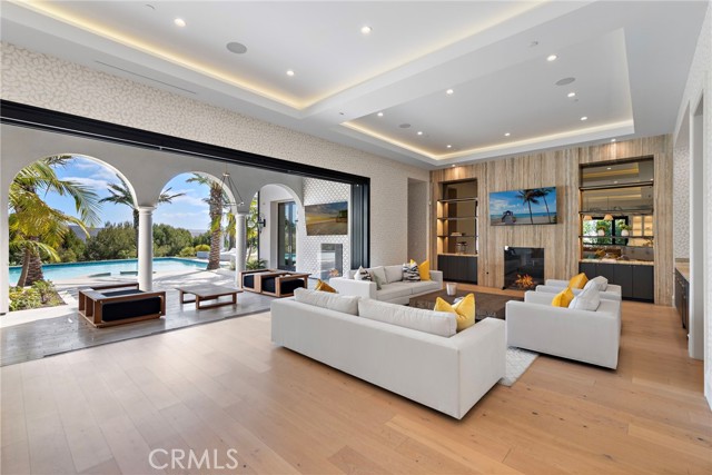 Experience the pinnacle of coastal living at this extraordinary resort-like estate. Impeccably designed with the finest materials and textures, this home offers an elegant retreat within one of Newport Coast s most prestigious, guard-gated communities. Every detail has been thoughtfully curated to provide a seamless blend of luxury and comfort. Floor-to-ceiling glass doors throughout the expansive living areas, kitchen, and bedrooms invite an abundance of natural light and offer unparalleled indoor/outdoor living. Step out to multiple private patios and enjoy stunning views of the sparkling ocean and lush canyon. The magnificent pool and spa area provide the ultimate backdrop for relaxation and entertainment. The chef s gourmet kitchen is a true masterpiece, featuring dual islands, exquisite finishes, and top-tier appliances. A separate caterer s kitchen, dining area, and additional living space all overlook the pool and canyon, making it the perfect setting for hosting guests. Other exceptional features include a cozy home theater, a formal living and dining room, a climate-controlled wine room, a poolside cabana, an outdoor bar with TV, firepit, and an outdoor kitchen with a built-in BBQ. The property also includes a 5-car garage and meticulously landscaped grounds, creating an inviting environment for both leisure and entertainment. An elegant stone staircase leads to four ensuite bedrooms, including an impressive primary suite with floor-to-ceiling doors that open to a private patio with sweeping pool and canyon views. The spa-like primary bath boasts his and hers closets, a soaking tub, and a separate shower. The detached casita, with its own entrance, can be utilized as a fifth bedroom or private office, providing ultimate flexibility for your needs. As part of this exclusive community, residents can enjoy access to a state-of-the-art gym, an Olympic-sized swimming pool, tennis and basketball courts, and a variety of community events. The beach, along with world-class shopping and dining options, are just minutes away. This magnificent property offers an unparalleled coastal living experience where luxury meets tranquility in the heart of Newport Coast.Interested in this Listing?