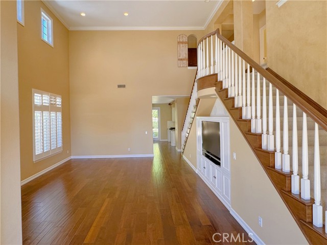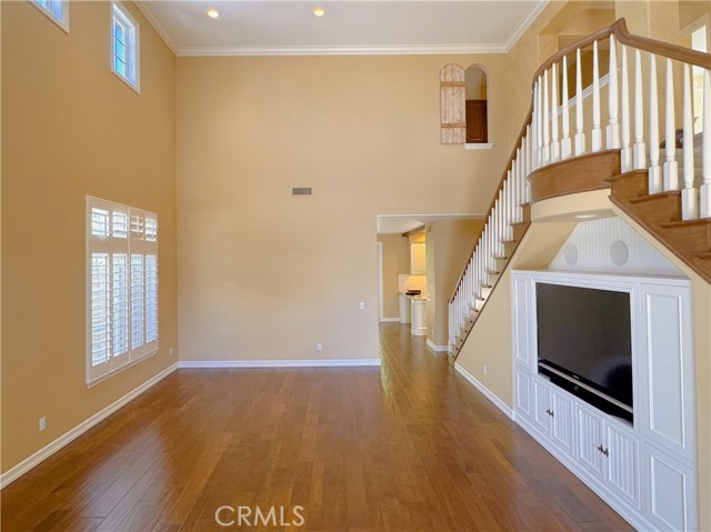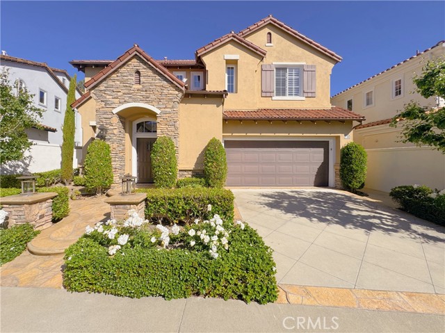 Come see perfection!!! Enjoy the luxurious Newport Coast lifestyle within the gates of Tesoro Crest. Attention to detail is evident in this spacious two level home, which offers immaculate finishes & architectural detail. This beautifully appointed turn-key home has a well-designed floorplan, 4 large bedrooms, 3 bathrooms, crown molding, plantation shutters, & baseboards throughout. An airy & expansive living room with high ceilings, hardwood flooring, & dual staircase seamlessly invite guests into the welcoming, sun-filled kitchen graced with granite countertops, an oversized island, and built-in breakfast nook. The kitchen/family room area has the Great Room feel as it includes a cozy fireplace & French doors which overlook the private & serene backyard. The main level bedroom/office & bath is ideal for guests. Second floor has an oversized master suite with impressive walk-in "California Closets" & resort style bathroom including dual sinks, soaking tub, & shower. Spacious laundry room with sink on second floor. Two car garage has built-in cabinets for storage. Home is located on quiet interior street,moments from one of two elegant community pools. Tesoro is walking distance to Coastal Canyon facilities, local shopping, & Newport Coast El School.