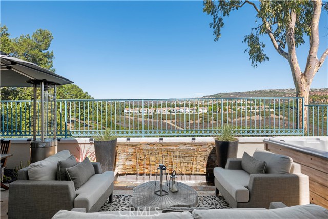 Located within the beautiful French-inspired gated community of Newport Ridge Vistas, this sophisticated town home has been completely reimagined from top to bottom offering luxury lifestyle and finishes like Italian porcelanosa marble, custom Restoration Hardware light fixtures and Sonos sound system inside and out. Fully furnished, as you enter the home you are greeted by soaring ceilings and a light filled dining room. The kitchen is a gourmet delight with 16 foot ceilings and views of the canyon featuring high gloss flat front cabinets with built-in Miele espresso machine, white marble counter tops and back splash, Subzero fridge, 2 dishwashers, a magnetic Miele cooktop and in wall ovens. The kitchen and dining area flow seamlessly to your private rear yard oasis with water feature, built-in BBQ and hot tub overlooking the tranquil canyon view. An office on the main level provides for the convenience of working from home. Take the stairs, with custom glass railing, to your primary retreat warmed by its own gas fireplace, a balcony to take in the canyon views and dual his/her closets. The spa-like primary bath features a soaking tub, walk-in shower and custom dual sink cabinetry with seated vanity area. Two secondary bedrooms and another full bathroom make this an eminently livable floor plan. Security cameras throughout, custom storage and laundry center round out this must-see property. Newport Ridge Vistas offers its own large green space and heated pool/spa as well as close-proximity to shopping, restaurants and Newport Coast Elementary School. All the amenities of Newport Ridge are nearby including pool and spa, sport courts, parks and playgrounds.