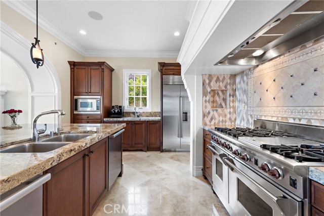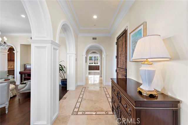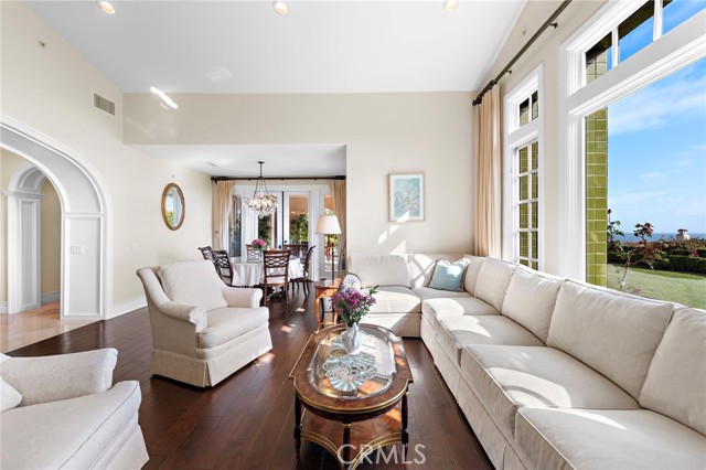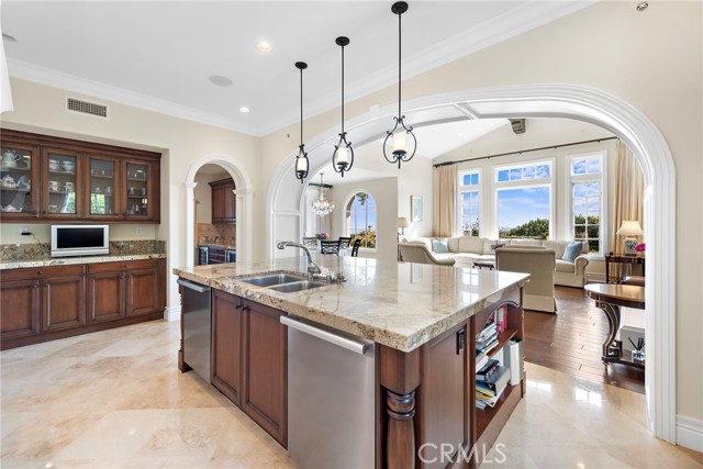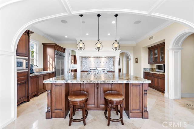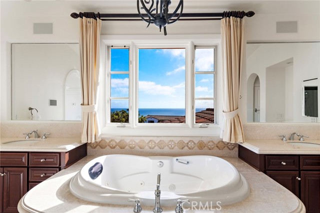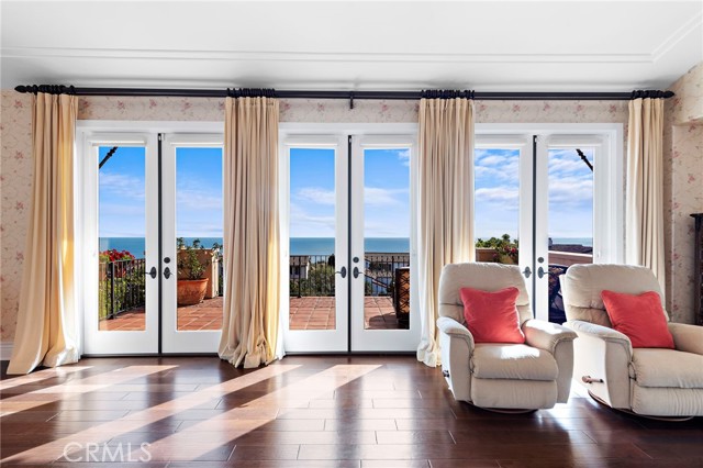 Perched above the Pacific in Newport Coast s prestigious Crystal Cove, this Mediterranean-inspired estate offers sweeping views of Catalina Island, El Morro Cove, and Abalone Point. Set on an expansive 11,077 (+/-) sq ft lot, the home spans 5,082 (+/-) sq ft of refined living space designed to embrace coastal beauty at every turn. Beyond a private gated courtyard, the residence welcomes you with wood-beamed ceilings, distressed walnut floors, and European tile floors, blending timeless elegance with relaxed sophistication. The formal living room features a precast fireplace, custom crystal chandeliers, and opens to a heated, covered loggia perfect for enjoying ocean sunsets year-round. The chef s kitchen is fully equipped with top-tier appliances, granite countertops, two dishwashers, a prep island, and a separate catering kitchen. An open-concept layout connects seamlessly to the family room and breakfast nook, all framed by panoramic ocean views. The primary suite is a peaceful retreat with French doors opening to a stunning, private ocean view terrace and a spa-inspired bath featuring a jetted tub, large walk-in shower, and dual walk-in closets. The thoughtful floor plan includes a dual-desk upstairs office and four bedrooms, five bathrooms, inclusive of a separate guest casita with private entrance ideal for visitors or multigenerational living. Enjoy a manicured lawn with plenty of room for relaxation and recreation, a 3-car garage with built-in storage, a built-in audio system, and ADT Security installed on all doors and windows. Living in Crystal Cove means more than enjoying an extraordinary home it s access to a world-class lifestyle. Residents enjoy a heightened level of privacy, prestige, and 24-hour guard-gated security along with exclusive amenities at The Canyon Club, including a resort-style pool, spa, fitness center, and sport courts. Private beach access, miles of scenic trails, and proximity to Laguna Beach, Newport Beach, and upscale shopping and dining at Fashion Island make this one of the most desirable communities on the California coast.Interested in this Listing?