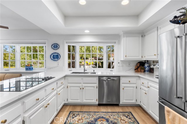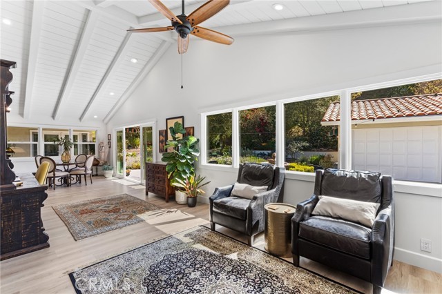 Chic, Serene, and just a short walk to the Tustin Hills Racquet Club! 11602 Ranch Hill sits on a quiet cul-de-sac in the coveted Racquet Hill neighborhood of North Tustin. This turnkey single-story John Lyttle built home blends modern upgrades with quality craftsmanship and effortless charm. Additional features include a detached three-car garage which could easily be converted to an ADU if desired, NEW HVAC and ducting, NEW electrical panel, and NEW windows and glass slider patio doors to allow natural light to flood this beautiful home. Spanning 3,809 sqft on a generous nearly 1/2 acre lot, this 5 bdrm 3.5 bath beauty offers a thoughtfully designed floor plan and low maintenance yard. From the moment you step inside, the vaulted wood beam ceiling and new patio doors create an airy vibe. Spacious living areas seamlessly connect. The kitchen is as functional as it is beautiful, with a cozy breakfast nook, quartz countertops, Jenair cooktop, double oven, and plenty of cabinetry. Newly upgraded gas fireplaces enhance the home's ambiance. The versatile fifth bedroom and bathroom off the family room makes for the perfect guest room, office, or studio. Newly remodeled bathrooms offer a spa-like escape. The primary suite features two large closets and patio doors leading to the backyard. The en-suite bath is designed for relaxation with a dual vanity, soaking tub, and luxurious walk-in shower. Additional bathrooms have been tastefully updated with high-end finishes. The home's secondary bedrooms feature quality built bay windows, enhancing the natural light and peaceful surroundings to the fullest. Step outside and immerse yourself in the serene backyard retreat a perfect blend of beauty and practicality. The drought-resistant, low-maintenance landscaping means more time enjoying and less time tending. Plenty of room to add a pool if you desire! A tranquil water fountain, dry creek bed, and bursts of colorful native plants create a Zen-like ambiance, while mature oak trees add natural shade. Whether you're hosting a lively gathering or sipping a quiet morning coffee, this space is pure bliss. With close proximity to top-rated Tustin schools, The Tustin Hills Racquet Club, premier shopping, dining, and hiking trails, this home is the perfect mix of modern elegance and everyday convenience. If you're looking for a beautifully remodeled, single-story sanctuary in an unbeatable location, this is the one! Don t miss it!Interested in this Listing?
