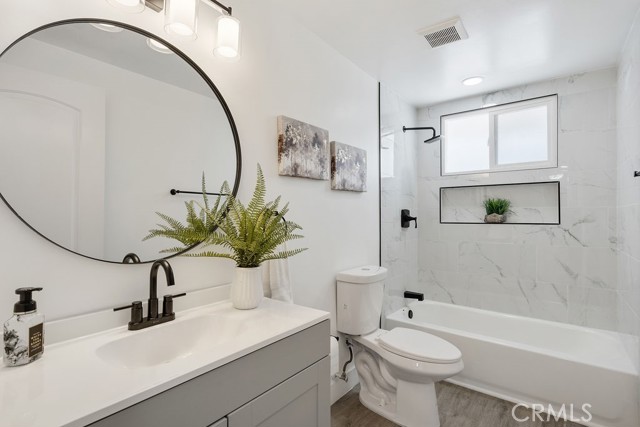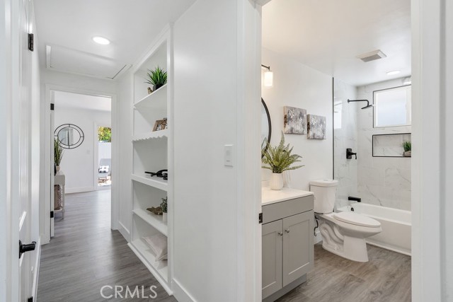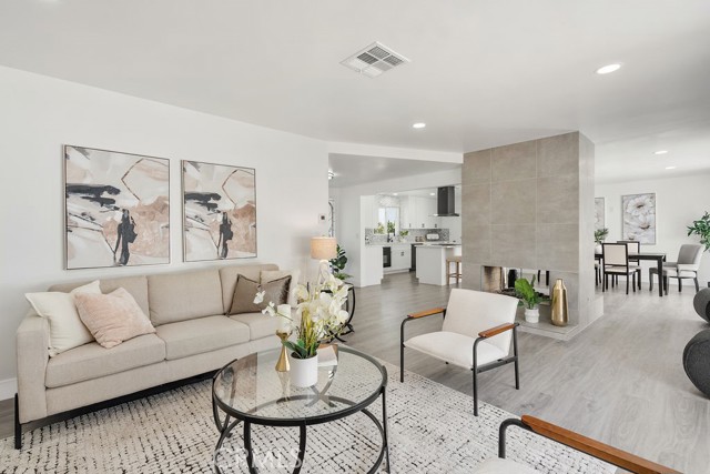 Welcome to 18211 Fairhaven Avenue, a thoughtfully upgraded single-story home set on a spacious 11,000 sq ft corner lot in the heart of North Tustin. Built in 1958 by legendary North Tustin builder Burt Huff, this 1,702 sq ft residence offers a functional layout, modern updates, and a prime location in an established neighborhood. Inside, the home features three bedrooms and two full bathrooms, all located on a single level for ease of access and everyday functionality. The open floorplan includes a large living room with a central fireplace, recessed lighting, and wood-style flooring throughout the main living areas. Double-pane windows provide energy efficiency while allowing for ample natural light. The remodeled kitchen is equipped with quartz countertops, a center island, and custom cabinetry. Appliances include an electric oven, range hood, and dishwasher. The kitchen flows directly into the family room and breakfast area, creating a connected living space ideal for casual gatherings or day-to-day living. The primary suite includes a remodeled en-suite bathroom with quartz countertops, a walk-in shower, and updated fixtures. Two additional bedrooms offer comfortable accommodations, with a secondary bathroom that has also been updated with modern finishes. Ceiling fans in key rooms help maintain a pleasant indoor climate alongside central heating and air conditioning. A two-car attached garage offers direct interior access and includes a designated laundry area. Outdoors, the property is fenced with durable vinyl fencing and includes a landscaped front and backyard. A private sport court adds to the home's versatility, offering space for recreational activities or additional outdoor use. Located near local parks and The Esplanade walking trail, this home is well-positioned within a quiet and established section of North Tustin. With no HOA, a generous lot size, and a turnkey interior, 18211 Fairhaven Avenue presents an excellent opportunity to own a well-maintained property in one of Orange County s most desirable communities.Interested in this Listing?