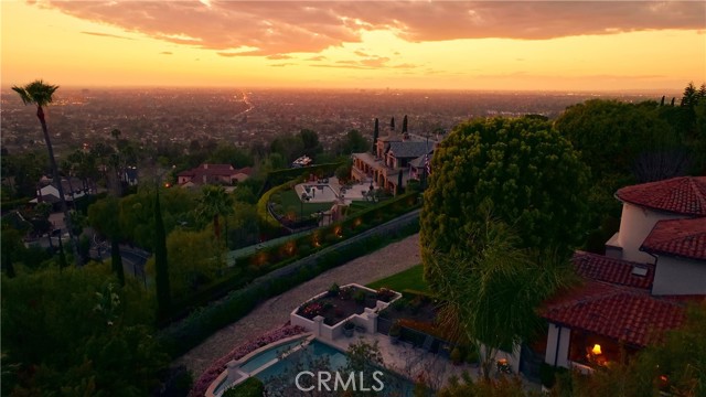 Set back from the street and boldly situated atop the hills of North Tustin, this historic Mediterranean Revival estate stands as a timeless masterpiece. Located in the heart of prestigious Lemon Heights, the privately gated enclave spans two meticulously landscaped parcels totaling 2.4 acres. Built in the early 1930s, the site was thoughtfully chosen for its summit location, offering unobstructed panoramic vistas from Catalina Island and Palos Verdes in one direction to serene treetop, pastoral, and mountain views in the other. Rare for a hilltop property, the estate also features expansive, flat grassy areas, creating the ideal balance between dramatic views and usable outdoor space. Under the care of a single family for nearly 30 years, the property has been meticulously maintained and thoughtfully upgraded over time. The 6,500-square-foot main residence is complemented by a guest house, a carriage house with an attached garage, a recreation center, an additional standalone two-car garage, and an expansive outdoor entertaining veranda spanning over 1,000 square feet. Inside the main home, extraordinary craftsmanship is on full display. Soaring ceilings, smooth stucco walls, antique walnut doors, windows, and flooring, and stone-carved European mantels evoke a sense of old-world elegance rarely seen today. Step through the rear portico and discover a central fountain, a circular motor court, and gardens designed for exploration. The horizon pool and spa are perfectly positioned for sunset views over Catalina by day and dazzling city lights by night. Adding to the property's uniqueness is a beautifully landscaped, undeveloped one-acre California-style garden a treasured and rare feature that further enhances this extraordinary estate. The lower lot is perfect for your very own vineyard.Interested in this Listing?