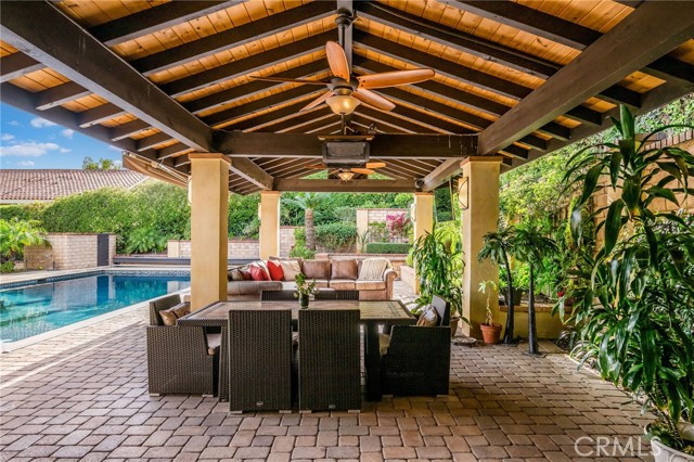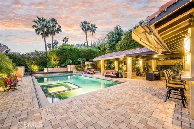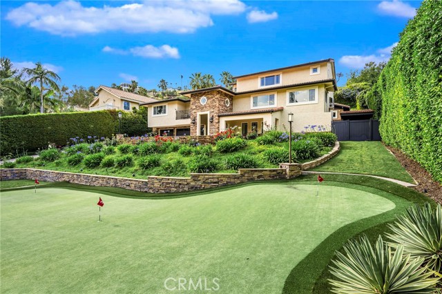 Are you the go-to host for every holiday, BBQ, and Sunday game day? If you've been dreaming of a home that feels like a private resort and the "go-to" place everyone wants to be, welcome to your forever home. Tucked into the heart of North Tustin, this sprawling 5-bedroom, 5-bathroom estate sits on half an acre of lushly landscaped paradise. The showstopper? A jaw-dropping backyard designed for next-level entertaining. Whether you re throwing a summer soire or a winter gathering, this outdoor space adapts to every season and occasion. Dive into the oversized saltwater pool and spa, enhanced by cascading water features. The automated pool cover keeps the temperature warm year-round pool parties in December. Unwind in one of the multiple covered patio areas, each with automatic canopies for shade, outdoor fans, and ceiling heaters for cooler evenings. Grill like a pro with two high-end stainless-steel BBQs in your fully equipped outdoor kitchen complete with a fridge, freestanding freezer and sink. Sports fans can catch every game under the stars with outdoor TVs and smart built-in audio system surround. The pool house has a full bathroom and lounge area- you could practically live in your backyard. Inside, the magic continues. The partially open galley kitchen offers prep space and casual dining with views of the front yard. The layout flows effortlessly into the formal dining area and cozy family room, both with easy access to the backyard s covered lounge area. The main level includes three spacious bedrooms and a home theater. Above the main level, an expansive primary retreat that opens directly to the backyard. Your spa-like ensuite has dual vanities, a walk-in shower, sunken tub, and generous his-and-hers closets. For those who want to fine-tune their short game, you ll find putting greens in the front and in the backyard. Car lovers will appreciate the 3-car garage, which includes a car lift and dedicated workshop space. There s also parking fo an RV, boat, or visiting guests.The entire home is powered by SmartThings technology, allowing you to control lighting, security, pool functions, irrigation, gate access, and more from your phone or remote. Everything is less than 7 years old, and the home is solar-ready with a power wall already in place just add panels. This is more than a home it s a lifestyle. If you're looking for a one-of-a-kind property that turns every weekend into a vacation and makes entertaining effortless, you ve arrived!
