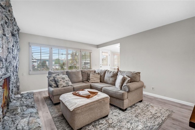 Nestled in a quiet and well-established neighborhood, 18531 E. Pearl Ave is a charming single-story home filled with warmth, character, and thoughtful updates. You'll fall in love with the inviting curb appeal highlighted by beautifully landscaped front grounds, a stone-accented facade, classic white shutters, quaint lamp post, and brick planter beds all wrapped in fresh new exterior paint. Step inside to find a refreshed interior featuring new luxury vinyl floors, fresh interior paint, upgraded baseboards, two-tone designer color palette, and custom grid windows with plantation shutters. The sunken living room is a standout, with its dramatic floor-to-ceiling stone fireplace creating a cozy yet striking focal point. The kitchen features custom soft green cabinetry, white tile countertops, new plumbing, white appliances, and a unique tray ceiling detail. The adjacent dining area includes a ceiling fan and French door that leads to the side yard for easy indoor-outdoor flow. This home offers three spacious bedrooms two of which are connected by a large walk-in closet while one includes sliding glass doors with direct access and views of the lush backyard, making it perfect as a restful retreat or home office. The hall bathroom is tastefully updated with wainscoting, a custom vanity, and upgraded fixtures. Recent improvements also include a new roof over the garage, a new wall heater unit, and new kitchen plumbing. The home includes an attached 1-car garage and an extended driveway, offering ample off-street parking for guests or multiple vehicles. The backyard is an entertainer s dream: a sprawling covered patio with arched openings and stone pillars sets the tone for relaxed outdoor living. Enjoy the built-in fire pit, BBQ area with sink, mature fruit trees, raised garden planters, and thoughtfully designed brick walkways. There's plenty of open lawn space for play or relaxation, along with a dedicated storage shed area offering flexibility for gardening, entertaining, and future expansion, including the potential for an ADU. Conveniently located near shopping, dining, parks, and major freeways plus just minutes from the coveted El Modena High School and other highly regarded local schools this move-in-ready gem blends classic California character with modern comforts and outstanding potential.Interested in this Listing?