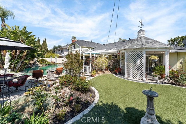 Welcome to this stunning 5-bedroom home, in the award winning Villa Park Schools. Nestled in a charming cul-de-sac with two primary suites one conveniently located on the main level with a walk-in closet, and the other upstairs with a loft area for added privacy and comfort. Step outside to your very own private oasis an expansive backyard with mature trees, gazebo, fruit trees including avocado, orange, lemon, apple, peach, and a soothing rock waterfall that cascades into the sparkling pool. The in-ground spa is perfect for unwinding while enjoying the serene ambiance of this retreat. Lavish gourmet kitchen, featuring ornate custom cabinetry, a top-of-the-line Dacor range, and beautiful granite countertops. A cozy breakfast nook provides the perfect spot to enjoy your morning coffee. For formal gatherings, the home offers both a formal dining room and a spacious living room, while an enclosed sunroom offers an additional space for relaxation and leisure. The home office comes complete with built-in bookshelves. Upstairs, you'll find a large loft area, perfect for a second living space, along with the second primary suite that adds a touch of luxury and convenience. Additional highlights include a two-car garage, ensuring plenty of storage space, and a location that is both private and close to shopping, dining, and entertainment options. The electrical, roof and plumbing have all been updated. This is more than just a home; it's a sanctuary waiting for you to call it yours. Don t miss the opportunity to make this dream home yours today!Interested in this Listing?