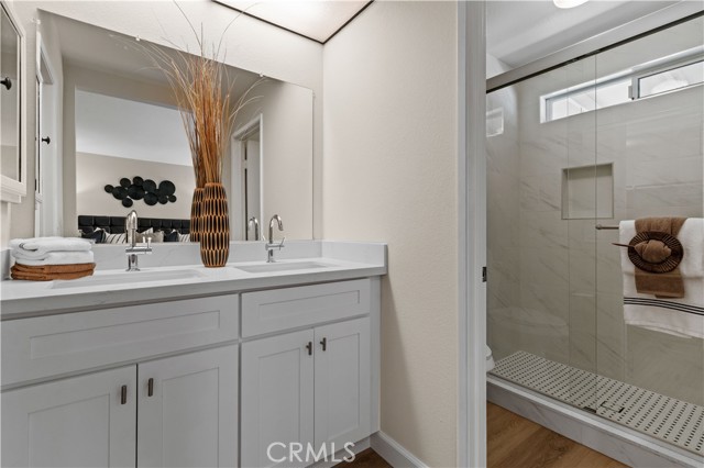 A Beautifull Fully Remodeled Home in the gated community of Casa Linda. This home at the end of a cul-de-sac, features 4 Large Bedrooms, 3 Bathrooms and a 5th room that is currently used as a Den / TV room, or an Office. It can easily be converted to a Fifth Bedroom as it already has a closet. The home feels open and specious with the high ceiling in the living room and the specious dining room and kitchen. It offers New Kitchen, New bathrooms, New Flooring and New Paint and Baseboards. The Master bedroom is downstairs and has a sliding door to the tranquil and manicured backyard. There is another bedroom and a bathroom downstairs as well as the den and an inside laundry room. Upstairs you will find two more huge bedrooms and a full bath. The gated community of Casa Linda is a quite community of 24 homes that is full of greenbelts, has a community pool and a cabana and boast pride of ownership. The home sits right in the heart of Orange County, with easy access to the 22 Fwy, 5 Fwy & 57 Fwy. Main Place Mall, and the Outlets at Orange together with CHOC Children Hospital, St. Joseph Hospital and UCI medical Center, are all within 5 minutes drive. Tons of dining and entertainment options, like the famous Orange Circle, Disneyland, Angel s Stadium, Chapman University and much more are just minutes away.. Excellent home in perfect location.Interested in this Listing?