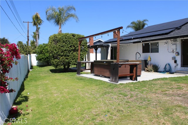 Great 4 bedroom, 2 bath single level home with large rear yard and spa. Home has newer kitchen with re-done cabinets, quartz counters, refrigerator, 5 burner gas cooktop, microwave, dishwasher and breakfast bar. Property also has recessed lights, built in cabinets in dining area, fireplace in living room, scraped ceilings, and ceiling fans throughout. Master bedroom bath has redone shower and closet, and guest bath surround has been retiled. The large rear yard has a spa, patio cover, storage shed, and solar electric with Tesla batteries. Easy to show and close to freeways & shopping. See agent remarks for details.Interested in this Listing?