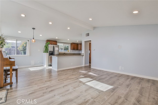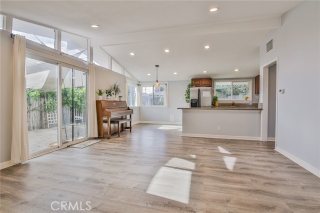 Welcome to this beautiful property! A place that immediately feels like home with a relaxed and modern appeal. Located in a quiet street, with contemporary landscaping, and a chic front porch serving as a nice welcoming approach to the 4 bedroom, 2 bath property. The open floor concept plan offers a fair amount of comfortable living space and includes waterproof laminate flooring throughout the home, a bright living room, dining area, new recessed lighting, and an updated galley-style kitchen. The fourth room is situated across from the kitchen & makes a wonderful family room option or office, while another privately situated bedroom with a nearby bath is perfect for extended family living. Fresh "Benjamin Moore" interior paint, new recessed lighting, soaring ceilings & floor to ceiling windows add to the home's appeal inside while the front porch & peaceful backyard with an extensive paved patio, mature shade trees, contemporary landscaped gardens, & a quaint grass yard make outdoor entertaining a breeze. Close proximity to shopping, restaurants, & freeways, this home is move-in ready and is sure to impress! Don't let this home pass you up! Get it before it's gone! This won't last long on the market!Interested in this Listing?