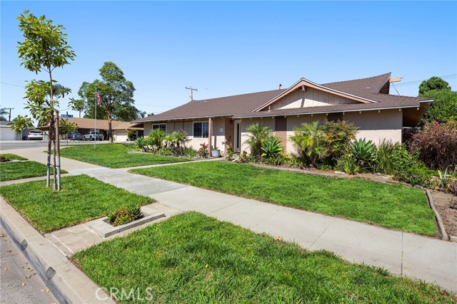 A classic and spacious SINGLE STORY home awaits, positioned on a private corner lot in an interior tract location, 231 N. Wheeler Street is now proudly presented to the market. A manicured landscape welcomes you with tropical inspired palms and plantings, a tiled front porch and newer glass accented front door lead the way inside. The interior of this home is comfortably laid out and all rooms, both living and bedrooms, are generously sized. Updates completed under prior ownership include; roof, windows, HVAC and plumbing. Recent updates include interior paint and ceiling texture, updated light fixtures, Decora light switches (some with dimmers). Hardwood floors are believed to be under the carpet in most rooms, buyer to verify. A generously sized living room features one of two fireplaces in the home, this one a handsome red brick, a sliding door provides easy backyard access. The welcoming dining room hosts the second fireplace, this one a retro 60 s stone finish, a sliding door and beamed ceilings complete the dining room. Functional and tidy the kitchen enjoys ample counter space, an electric cooktop and built-in oven. Convenient inside laundry connections are found in a closet in the kitchen. Down the hall three generously sized bedrooms offer original hardwood flooring and ample closet space. The large hall bathroom features an expansive vanity and tile surround around the bathtub/shower. The primary suite enjoys a private location off the main foyer and is a peaceful space with dual closets, updated light fixtures and switches and a ¾ en-suite bathroom with tile shower and stylish updated fixtures. Two sliding doors lead from the interior to private backyard enjoying a concrete patio and lush green lawn. Tropical plants including plumeria and palms compliment the yard. Two sheds and a 2-car detached garage complete the property and provide ideal storage space. Come and enjoy this convenient Orange location moments to schools, shopping, dog park and 55 fwy.Interested in this Listing?