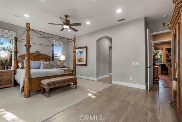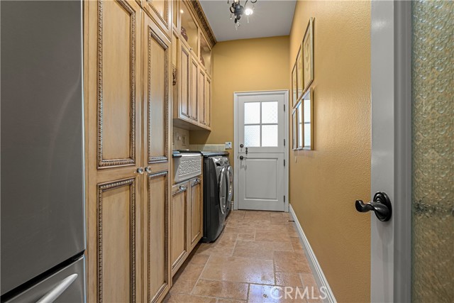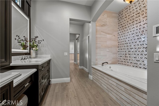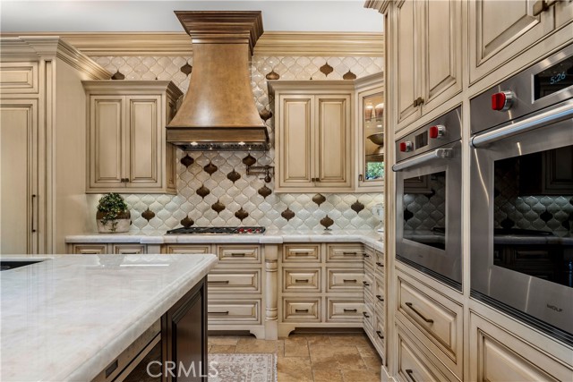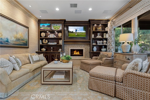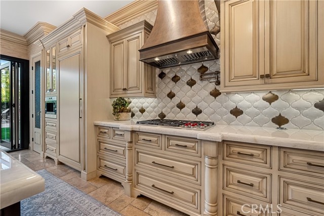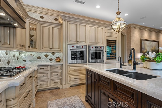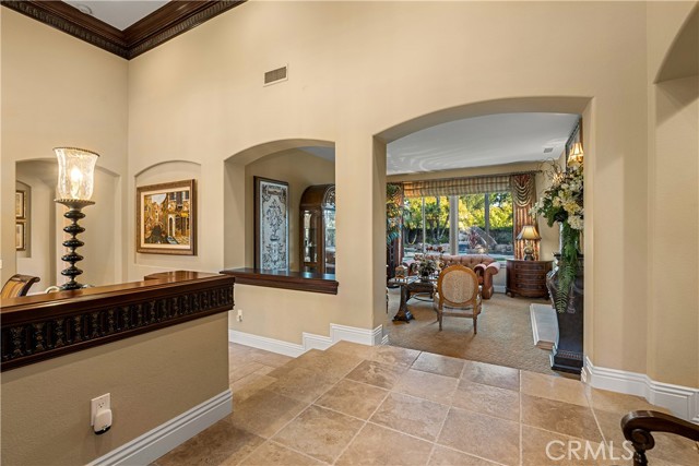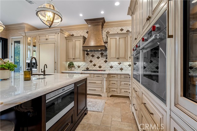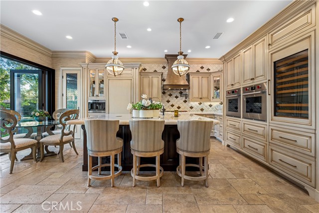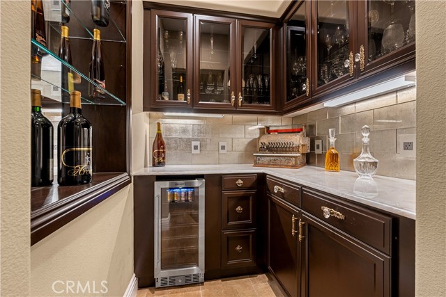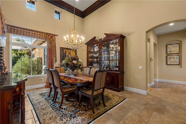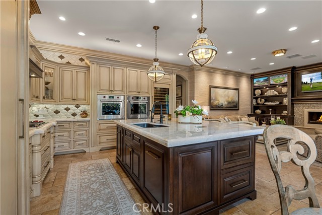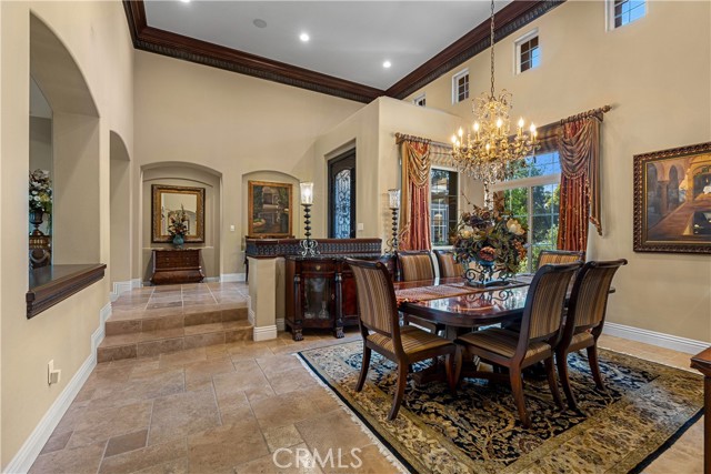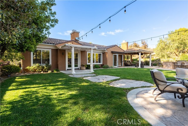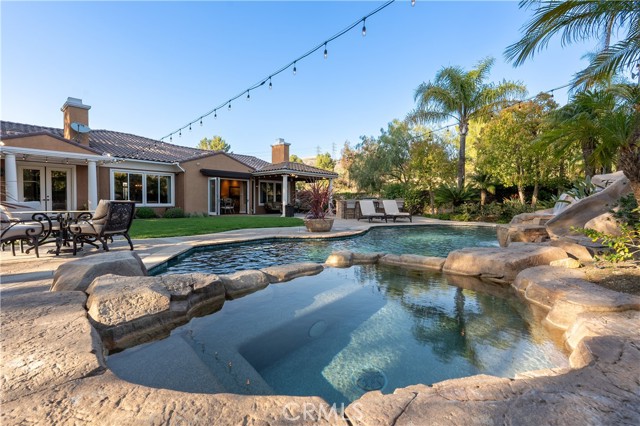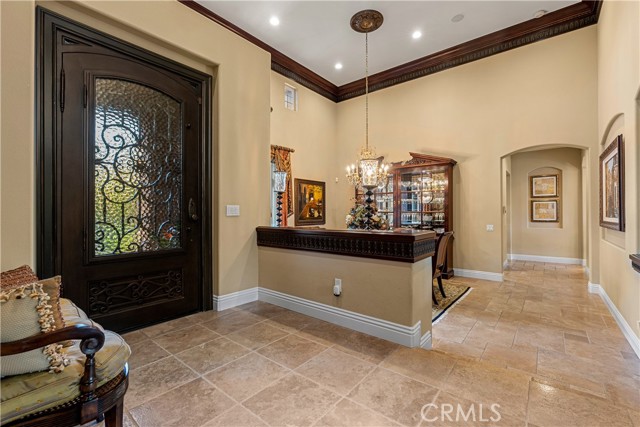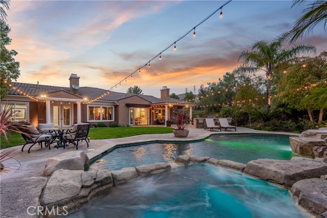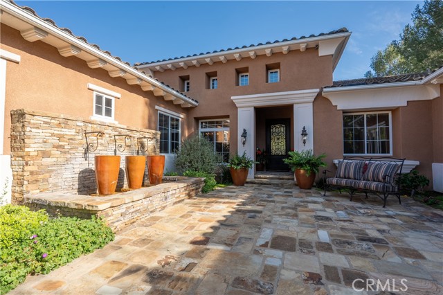 Nestled in the prestigious Portofiro community, this stunning 4-bedroom, 3.5-bathroom single-story estate boasts 3,560 sq. ft. of luxurious living space on a sprawling 20,000 sq. ft. lot. Thoughtfully designed with high-end finishes and seamless indoor-outdoor living. Step through the elegant iron and beveled glass front door into a grand foyer with travertine flooring, leading to the formal living room with a cozy fireplace and breathtaking backyard views. The adjacent formal dining room impresses with soaring 16 ceilings, crown molding, and a chandelier, while the stylish bar features a wine fridge, quartz countertops, and a tile backsplash.The beautifully remodeled chef s kitchen is a masterpiece, equipped with double ovens, a 5-burner cooktop with a pot filler, range hood, microwave, warming drawer, refrigerated drawers, wine cabinet, built-in fridge, and a coffee machine. Custom-colored, soft-close cabinetry, quartz countertops with pop-up outlets, a walk-in pantry, filtered water, and a touch-activated faucet complete this culinary haven. The family room, with its mosaic-tiled fireplace, built-in bookshelves, and recessed lighting, offers a warm and inviting atmosphere.Expansive folding glass doors create a seamless transition to the backyard oasis, where a pool, waterslide, grotto, and three sets of speakers set the stage for ultimate relaxation. Enjoy outdoor gatherings with a built-in BBQ, bar seating, refrigerator, motorized awning, patio covers with ceiling fans and sunshades, and a side yard perfect for a dog run.The luxurious primary suite features French doors to the backyard, tile flooring, recessed lighting, and four closets. The spa-like primary bath boasts dual sinks, backlit mirrors, a soaking tub, an oversized walk-in shower with multiple showerheads, and a private retreat with courtyard access.The well-appointed secondary bedrooms offer comfort and versatility. One bedroom features an en-suite bath and a chandelier, perfect for guests or multi-generational living. Two additional bedrooms one with a ceiling fan and mirrored wardrobe, the other with recessed lighting and a chandelier share a stylishly designed Jack-and-Jill bathroom.Additional highlights include surround sound throughout the home controlled by a Crestron system, powered blinds in key areas, a dedicated office with built-ins, an oversized laundry room, custom hallway cabinetry, and a front courtyard designed by Roger s Gardens with a stone patio and fountain.Interested in this Listing?