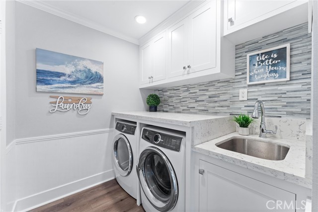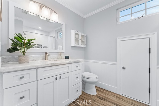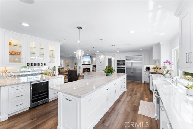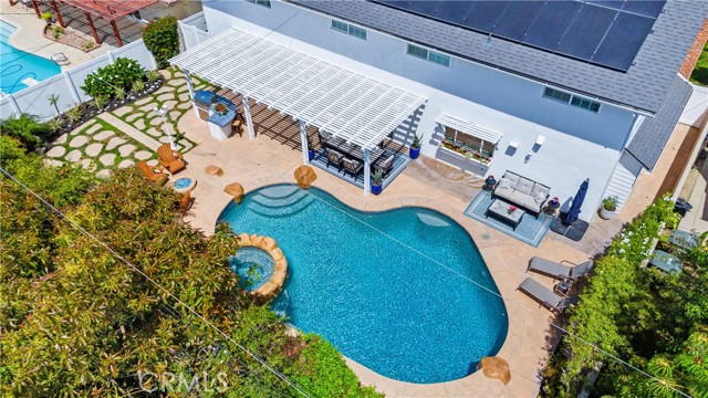 Welcome to 2546 E Palmyra Avenue in Orange a fully remodeled 5-bedroom pool home that blends everyday luxury with family-friendly functionality in a location that couldn t be more ideal. Just minutes from Target, top-rated charter schools, parks (including a dog park!), restaurants, and freeway access, this stunning property is your gateway to comfort, community, and convenience. From the moment you step inside, it s clear this home has been thoughtfully upgraded from top to bottom. The open-concept downstairs offers seamless flow, custom built-in cabinetry, new luxury flooring throughout, and dual built-in speakers inside and out to set the mood for any occasion. The kitchen is a dream for home chefs and entertainers alike, featuring quartzite countertops, a marble backsplash, two oversized Shaw sinks, a wine fridge, built-in fridge, walk-in pantry, double ovens, a warming drawer, and a reverse osmosis + hot water tap system all nestled into elegant, soft-close cabinetry with deep drawers and two pull-out garbage bins. Upstairs you ll find two spacious primary suites with ensuite baths and a laundry chute that adds a touch of old-school charm and modern practicality. The upstairs hall bath features marble floors and tilework, with marble details also found on the downstairs bath counter, fireplace hearth, and upstairs hallway counter. A finished attic with built-in shelving accessible from both the garage and primary suite offers ideal storage or hobby space. Step outside into your own private oasis, where a remodeled saltwater pool and jacuzzi await (and yes, it heats to 90 degrees in summer). The vinyl-fenced yard is lined with sunset-hued roses and beautifully landscaped with a drip and sprinkler system throughout. A custom pergola patio, outdoor fire pit, and built-in BBQ island set the stage for year-round entertaining, while child-safe pool fencing provides peace of mind. The attached garage features epoxy floors, built-in cabinets, a workbench, and a bonus office space ideal for remote work or creative projects. With paid-off solar, a tankless water heater, new HVAC system, re-plumbed water and sewer lines, dual-pane windows and sliding doors (with new screens), this home is as efficient and low-maintenance as it is beautiful. In short, this home checks all the boxes thoughtful updates, flexible living space, stunning outdoor entertaining, and a location that keeps you connected to everything. It s more than move-in ready; it s your next chapter!