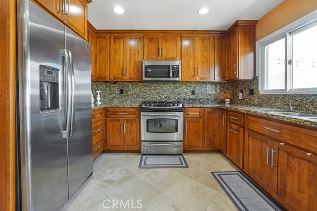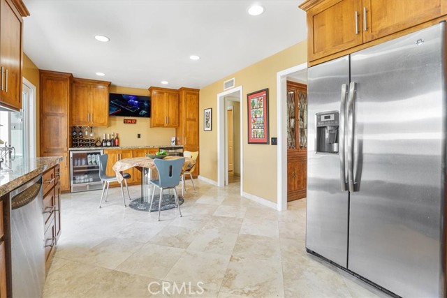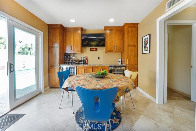 This turnkey 3-bedroom, 2-bathroom home sits on a desirable corner lot in a tranquil cul-de-sac, offering added privacy and curb appeal. Travertine stone floors provide timeless elegance, while solar power ensures energy efficiency and savings. The beautifully appointed kitchen features granite countertops and stainless steel appliances, blending style with functionality. A dry bar and dual beverage fridges add convenience, perfect for entertaining. The spacious living room, wired for surround sound, enhances entertainment possibilities. Step outside to a low-maintenance backyard with stylish pavers and a sparkling swimming pool, ideal for relaxation. A finished three-car garage provides exceptional space for vehicles, storage, or projects. Prime location, premium upgrades, and modern conveniences this home is a must-see!Interested in this Listing?