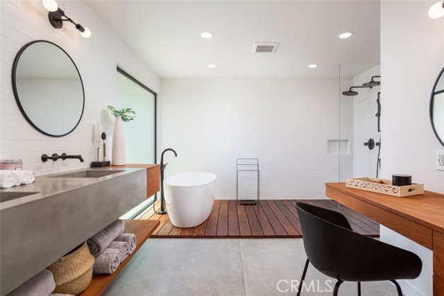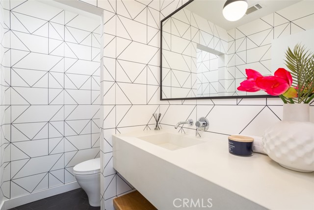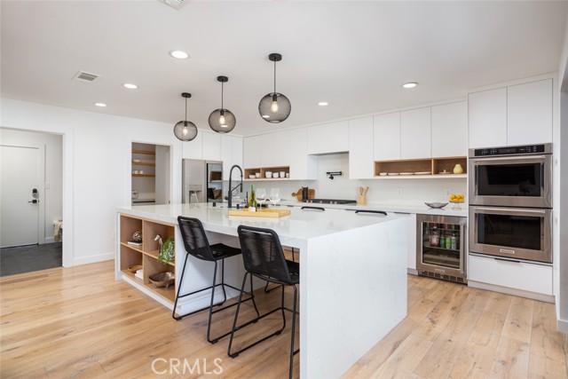Completely rebuilt, reconfigured and remodeled, this clean and contemporary Orange home is 100% move-in ready. Located in the mature, upscale neighborhood of Gainsborough North, the spacious single-level residence fuses a Mid-Century aesthetic with sleek Scandinavian design throughout its nearly 2,503 square feet of living space. Redesigned to provide an open indoor/outdoor floorplan, the five-bedroom, four- and one-half-bath home features three ensuite bedrooms, an office/playroom, a fireplace-warmed living room with slide-away glass door to the backyard, and an attached oversized two-car garage with EV charger, built-in cabinets, epoxy-coated floor and adjacent mud room. A seamless dining and kitchen area accesses the backyard through another slide-away door. Mealtime prep is enhanced with with stainless steel appliances including a six-burner cooktop, an oversized waterfall island with seating, quartz countertops, generous white cabinetry, and a walk-in pantry with open shelving, roll-out drawers and ample counter space. Remodeled to fit today s preferred lifestyles, the primary suite hosts a walk-in closet with custom built-ins, a heated bathroom floor, custom floating concrete vanity with two sinks, and a rain shower and freestanding tub over IPC wood slats. By stripping the home down to its studs, the owners were able to incorporate new plumbing and electrical systems, high-end Jason Wu for Brizo fixtures, new ducting, newer HVAC, a whole-house fan, solar power, Milgard windows and doors, and a smooth stucco exterior. Grounds are new, too, and include a saltwater PebbleTec-finished pool with Baja shelf, two patios, and a sunken seating area with open-air fireplace and a built-in BBQ. Gainsborough North is convenient to McPherson Magnet School, La Veta Elementary School, shops and restaurants at Orange Circle, major freeways and Disneyland.Interested in this Listing?