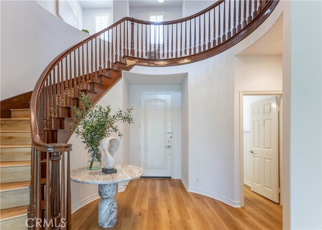Welcome to this exquisite 4-bedroom, plus an office, 3.5-bathroom luxury residence a thoughtfully designed home where upscale living meets everyday family comfort. From the moment you enter, you ll be captivated by the grand entryway featuring soaring 15-foot vaulted ceilings and elegant designer lighting, setting the tone for the exceptional space that lies ahead.Perfectly suited for families, the open-concept floor plan offers generous living areas filled with natural light from expansive windows throughout. The spacious family room is ideal for relaxed evenings or lively gatherings, while the seamless flow into the kitchen and dining areas makes entertaining effortless. The gourmet kitchen is a chef s dream and a family hub, complete with granite countertops, an oversized center island with bar seating, and ample storage. Whether you're hosting dinner parties or helping with homework over breakfast, this space is designed to bring people together. A flexible den or office just off the main living area can easily be converted into a playroom or fifth bedroom to grow with your family's needs. The first-floor guest suite with a private full bath is perfect for visiting relatives or live-in help, offering privacy and comfort without compromise. Upstairs, the elegant roundabout staircase leads to three additional bedrooms, including a luxurious primary suite. Enter through double doors into a peaceful sanctuary featuring dual walk-in closets, a spa-like bathroom with a soaking tub, glass-enclosed shower, dual vanities, and a dedicated vanity area every detail crafted for convenience and indulgence. A front-facing upstairs bedroom offers access to a spacious balcony patio, perfect for soaking up the sun or unwinding under the stars. Located in a family-friendly neighborhood with easy access to parks, top-rated schools, and community amenities, this home combines sophisticated design with practical living. Experience the best of upscale family living.Interested in this Listing?