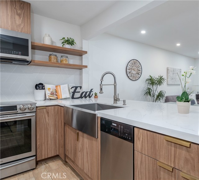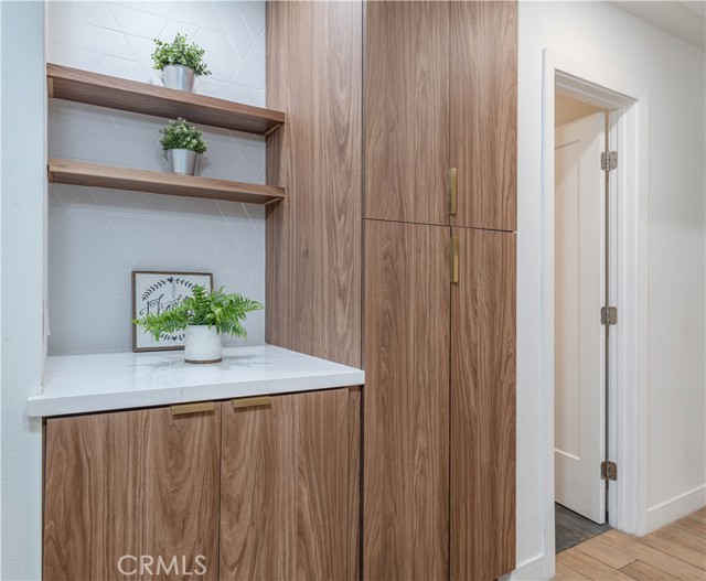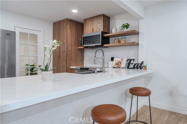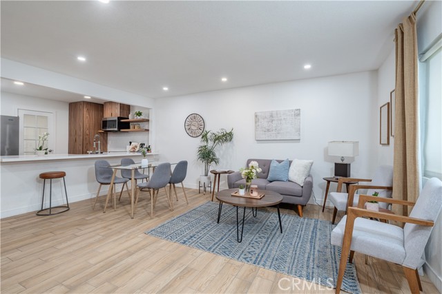 Discover the charm of this spacious single-story condo-home nestled in a cul-de-sac in Orange, where you'll enjoy the luxury of no neighbors above or below. This delightful residence features one primary bedroom and a versatile bonus room, perfect for an office, creative space, or hobby area. The interior boasts beautiful wood-like flooring that elegantly anchors the open living spaces. Step into the modern kitchen, where you'll be greeted by stunning quartz countertops, a chic subway tile backsplash, and a generously sized contemporary sink. Floating shelves provide stylish accents, while the expansive serve-over bar invites casual dining and lively entertaining. The full bathroom has been thoughtfully upgraded with a beautifully crafted wooden vanity and custom half-tile walls that add a touch of sophistication. Both the primary bedroom and bonus room feature sliding doors that seamlessly open to a large, inviting patio area perfect for soaking up the sunshine or hosting outdoor gatherings. An added convenience is the interior laundry area, which makes everyday chores a breeze. The Homeowners Association (HOA) covers essential services such as water and trash. Residents can indulge in the community's amenities, including a refreshing pool, relaxing spa, and BBQ area, all just a stone's throw away from the Villager at Orange Mall. This prime location places you within walking distance to parks, shops, and an array of dining options. Plus, you'll find yourself in the highly sought-after Villa Park School District and conveniently close to freeways 55, 91, and 22, making commutes easier than ever.Interested in this Listing?