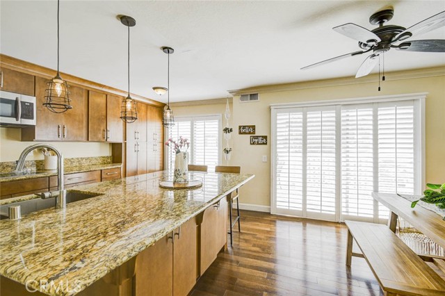 Welcome to your dream home in the highly sought-after Villuerbanne community! Nestled against the lush hills of Orange, this beautifully upgraded 3-story Stream Home condo offers 3 spacious bedrooms and stunning interior features that are sure to impress. Step inside to soaring vaulted ceilings, an abundance of natural light, and elegant wood flooring throughout. Every window is adorned with classic plantation shutters, enhancing the home s timeless charm. The chef s kitchen is a showstopper open and expansive with granite countertops, a breakfast bar, a floor-to-ceiling pantry, and abundant cabinetry. Enjoy top-of-the-line appliances including a gas double oven, induction cooktop, microwave, and dishwasher. A sliding glass door off the dining nook opens to a large private balcony perfect for BBQs and outdoor entertaining. A separate formal dining room overlooks the inviting living room, which features a cozy fireplace, built-in lighted custom cabinetry, and access to a serene back patio with an enclosed porch that leads to a peaceful stream and greenbelt walking path. Retreat to the generous primary suite complete with a large updated shower, dual vessel sinks, expansive counter, and a private toilet room. The ground floor offers direct garage access, a half bath, and convenient inside laundry. Villuerbanne residents enjoy resort-style amenities including 3 pools, 2 spas, a clubhouse, BBQ area, walking trails, and tranquil streams throughout the community. Just minutes from Irvine Park, Santiago Oaks, Peter s Canyon, Chapman University, and the 55/toll roads perfect for hiking, biking & nearby equestrian trails. Resort-style community with pools, spas & scenic trails. Don t miss it! Don t miss your chance to own this move-in-ready gem!Interested in this Listing?