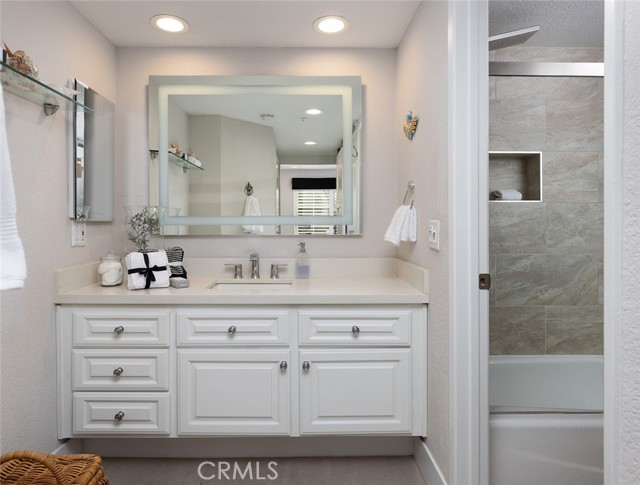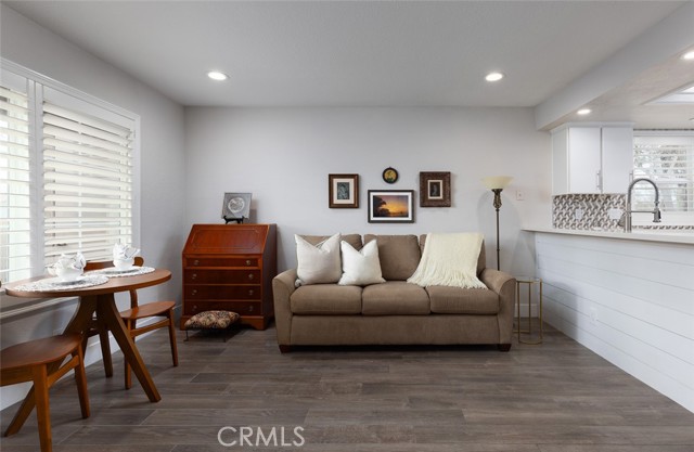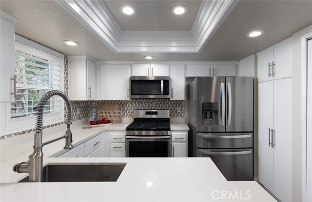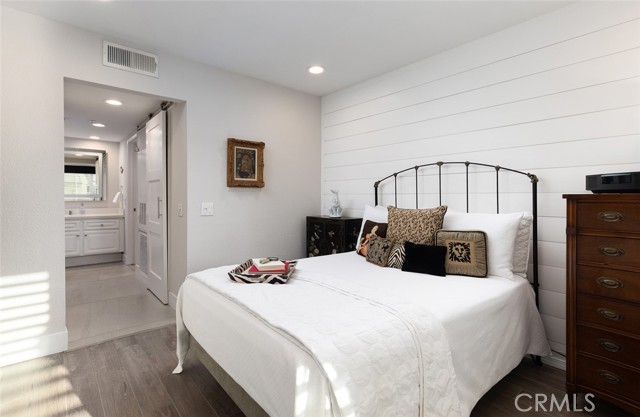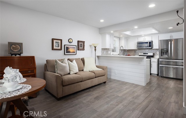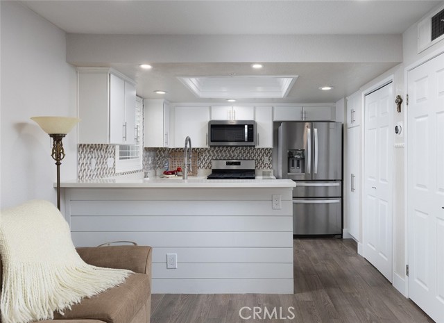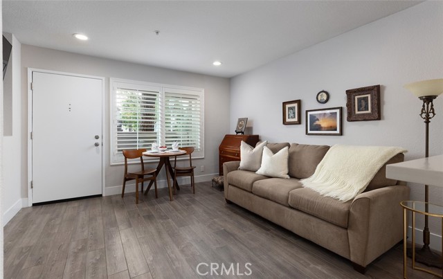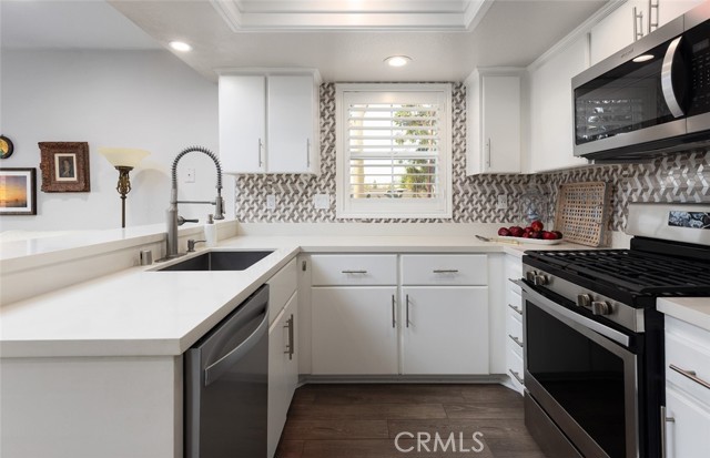 Welcome to this fabulously renovated, lower-level, end-unit condo, perfectly situated in the Canyon Hills complex with a secluded patio overlooking a lush greenbelt. This home boasts a prime location, offering a serene retreat with an abundance of upgrades throughout. The bright, white kitchen features stunning quartzite countertops, an eat-in bar, tiled backsplash, soft close cabinets, stainless steel appliances, a farmhouse-style sink, and a spacious pantry ideal for both cooking and entertaining. Large Milgard dual-pane windows provide natural light while framing views of the trees and greenbelt, complemented by stylish wood plantation shutters. Newer appliances including the dishwasher and washer & dryer in 2024, and water heater in 2023, ensuring modern convenience. The bedroom showcases a beautiful wall of white shiplap paneling, creating a chic and inviting space. The remodeled bathroom matches the stylish aesthetic with its own shiplap accent and ultra-modern theme. Daltile Porcelain flooring and recessed lighting throughout, along with a Nest thermostat for your convenience. Storage is a highlight, with a generous walk-in closet with Masonite barn door, a storage closet, pantry, large linen closet, built-in shelving, and even extra space in the 1-car garage complete with rubberized coin modern flooring and added electrical. Unassigned parking is readily available for guests for added convenience. This pet-friendly community offers two sparkling pools, two soothing spas, a fully equipped fitness center, and a clubhouse perfect for social gatherings. Enjoy plenty of green space, winding pathways, and walking trails. Explore nearby Peters Canyon and Irvine Regional Parks with scenic hiking trails, peaceful lakes, and expansive park areas. With easy access to the 241 and 261 freeways, you're just moments from The Marketplace, The District shopping centers, and the cities of Irvine and Tustin. Plus, you re just a quick drive down Chapman to Old Town Orange, making this location both convenient and picturesque.Interested in this Listing?