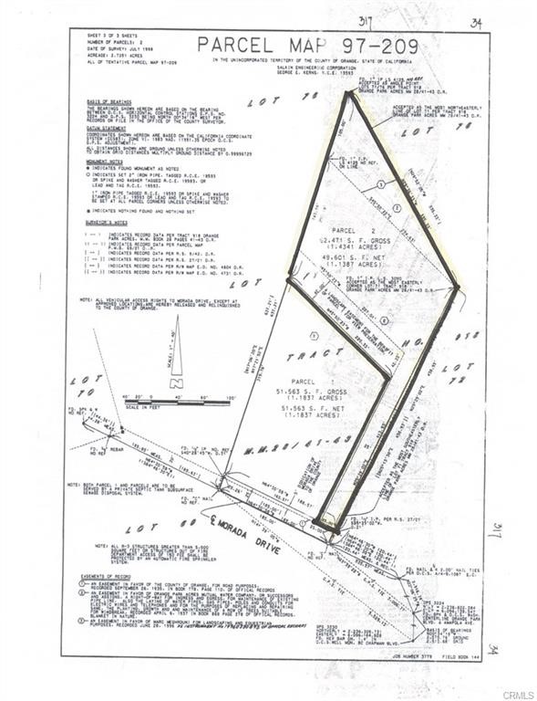 Least expensive 1 acre lot in ALL of Orange Park Acres. Beautiful flag lot on prestigious Morada drive. Oversized 25' wide driveway entrance. Ample room for grand pilasters and privacy gate. Secluded homesite with mountain views and distant lights. Current pad is approximately 4,000 sqft and can easily be enlarged to 8,000 sqft with minimal grading. Seller will not carry loan, JV or subordinate. Looking from the street, property is between 10472 and 10462. Buyer to cooperate in a 1031 exchange at no cost to buyer. No Sign on the property.