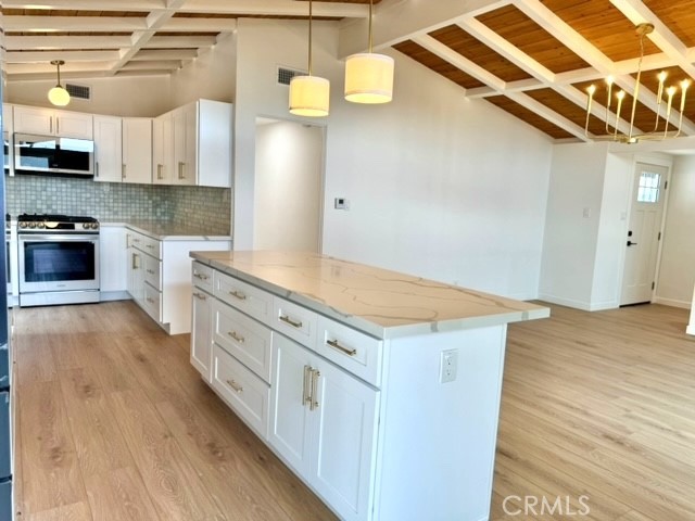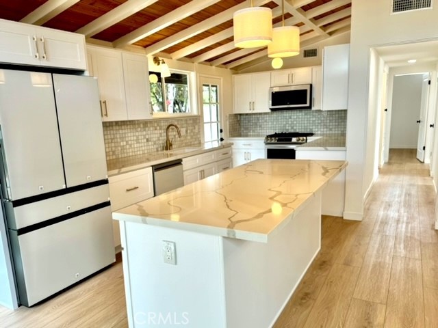 Updated 1950's charmer!! This 4 bedroom, 2 bath single story home measures 1,480 square feet, and sits on a 6,050 square foot lot. The interior features a newly remodeled kitchen with custom cabinets, new quartz countertops, designer backsplash tile, designer lighting and brand new stainless appliances. Light and bright floor plan with luxury vinyl plank flooring installed throughout. 2-Car garage, RV PARKING and freshly landscaped front yard. The fenced backyard offers just the right amount of space for entertaining. Located near numerous restaurants and shopping and close proximity to the 57 freeway. 12 month lease. Tenant is responsible for all utilities. Gardener included with monthly rent. This home won't last long!!