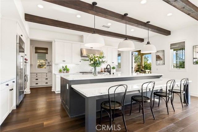 Nestled within the sought-after enclave of Sea Summit, this exceptional residence offers a composition of ocean views, privacy, and luxurious interiors. Full of gentle Pacific breezes, the home features a seamless blend of elegant indoor spaces and multiple outdoor areas, creating the ultimate coastal living experience. An array of refined, high-end materials has been expertly interwoven throughout this spacious five-bedroom property, creating a tranquil haven. The main level connects to the outside via multiple sets of folding doors, fully inviting the exteriors in. A tiered, oversized eat-in island anchors the great room, which encompasses the informal dining area and living section with a fireplace. The entirety of the space is accented by rich wooden beams. The kitchen, the heart of the home, offers both form and function. A suite of high-end appliances blends seamlessly into the two-tone cabinetry while the butler s pantry supplies additional storage and counter work space. The private, lushly landscaped backyard with a solar-heated pool and hot tub provides more entertaining options, with a fire pit and a fully equipped outdoor kitchen. A coveted and peaceful ground floor bedroom, complemented by an en-suite bath, completes this level. Exquisite design elements continue upstairs: the ocean-view primary suite features shiplap details, a large balcony, and doors on opposite walls to allow enjoyment of cross-breezes from the coastline. Pacific vistas extend into the adjacent bathroom, which is bright and opulent, with a large soaking tub, oversized shower, and walk-in closet. A versatile bonus room on this floor can serve multiple functions, while the secondary bedrooms, each with en-suite bathrooms, offer great sleeping quarters. Revered for its location as well as amenities, Sea Summit features a community clubhouse with a pool and spa, and easy access to miles of hiking trails, the area s beaches, and lively downtowns of San Clemente and Dana Point.Interested in this Listing?