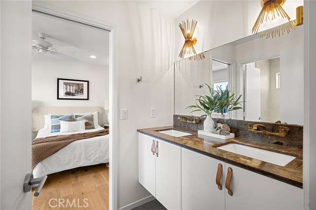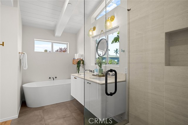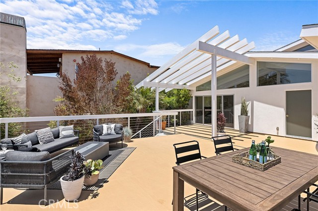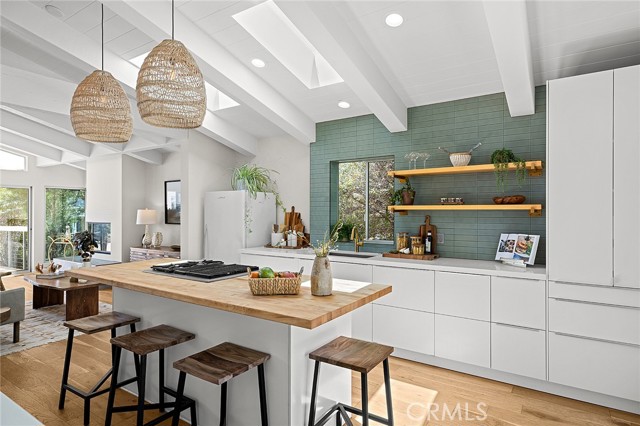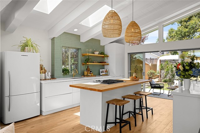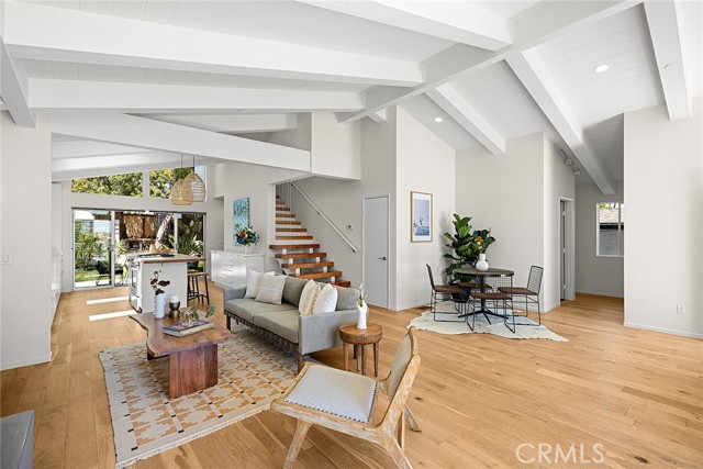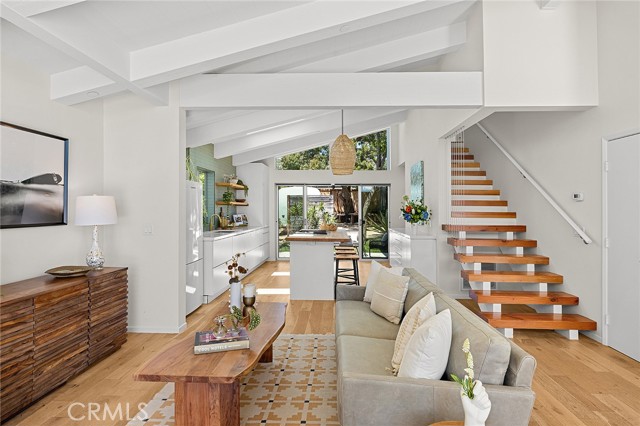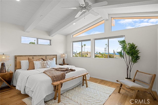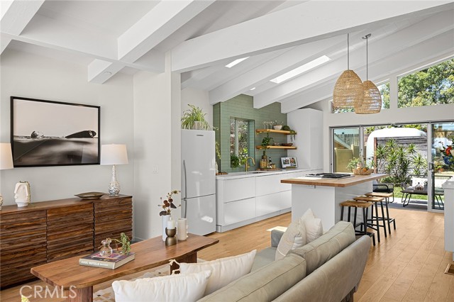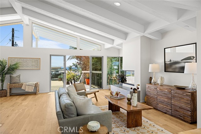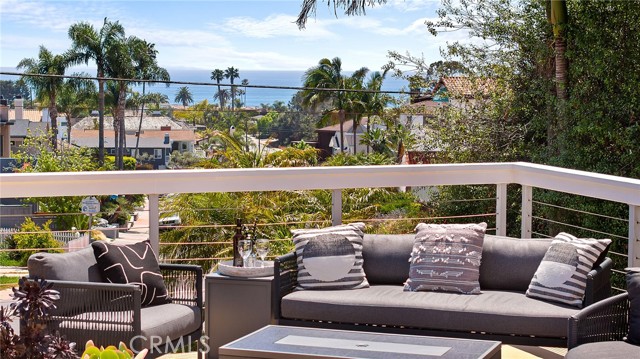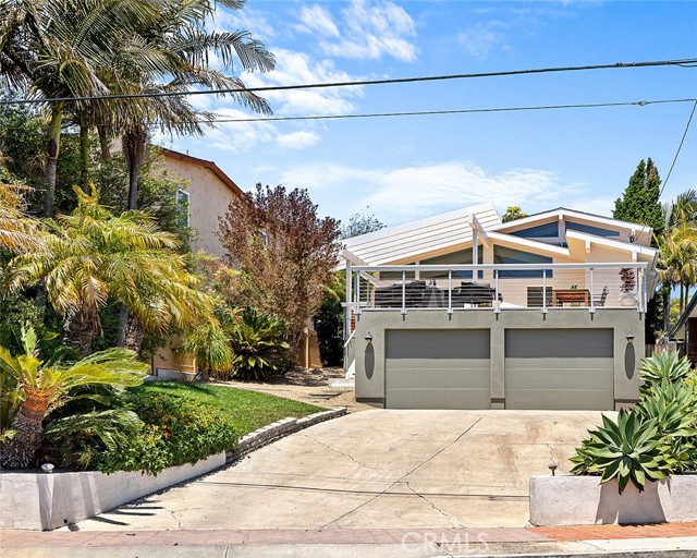 Occupying a rare (preserved) ocean-view lot in the desirable southwest neighborhood, this mid-century-modern ranch home is sure to impress. Newly-built in 2017 & re-imagined with timeless architecture in mind, this beachy offering not only has a timeless vibe, but has all the modern comforts of a new build. Perched high above the street on an oversized 8,500 SF lot, this home captures rare ocean views. Inside, stunning vaulted ceilings with oversized beams invite you into the most amazing space. Flooded with natural light from large gable windows, this great room is truly impressive. Natural Oak wood floors unite the living, dining & kitchen all in one substantial great room warmed by a modern gas fireplace. Direct ocean views can be seen from this main-level living space inside & out. In the kitchen, skylights illuminate a butcher block island with bar seating & stainless range, groovy stacked tile, open shelving, quartz counters, & sleek cabinetry making this kitchen exceptional. On the guest wing, two bedrooms share a Jack&Jill bath with dual sinks. An indoor laundry room, powder bath, & direct access to the garage complete the main living level. Large sliders (front&back) lead to several expansive outdoor areas. Off the front, a massive 500+ SF deck offers space for lounging & dining with a direct ocean-view down the canyon, ensuring preserved views. The wide-open backyard offers a vibe like no other in the area. Sprawling grounds accommodate a collectible 1948 Vagabond Trailer guest house (hard-wired & plumbed), grassy area, dog run, a large DG area for summer nights around the fire, storage, corten steel planters, & dining patio all enhanced by old-growth pepper trees. Peek ocean views from the rear yard with a ranch-like feel are rare here. Up the groovy wood staircase is the most comfortable primary suite with vaulted ceilings, wood floors, soaking tub, private toilet, walk-in shower, dual sinks, gable windows, & major ocean views - a magical place to wake up with views of the sea & complete privacy. Other major values: newer construction built in 2017, large lot with potential for ADU/pool, A/C, fire sprinklers, finished 2-car garage with major storage & direct garage access, low-maintenance landscaping with grassy areas. For those seeking a laidback, beachy lifestyle close to amazing beaches and access, fine dining, a 2.5 mile beach trail with a cafe just below at T-street, world class surfing, & great community, this is your opportunity!Interested in this Listing?