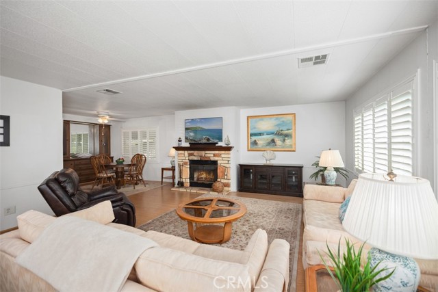 Welcome to 143 Mira del Sur, located in the highly desirable 55+ community of Shorecliffs Terrace in San Clemente. This charming 2-bedroom, 2-bathroom home offers comfort and style with a spacious layout and thoughtful details. The large living room, featuring beautiful plantation shutters, is perfect for entertaining or relaxing, while the generous bedrooms provide ample space for your needs. A cozy fireplace adds warmth to the living area, and the art/sunroom offers a bright and airy spot for creativity or quiet reflection. The dining room also boasts plantation shutters, adding a touch of elegance. The built-in hutch offers additional storage and character. The kitchen comes complete with a refrigerator, and the convenient laundry room includes a sink along with the washer and dryer. With a carport and a shed for additional storage, you'll enjoy a low-maintenance lifestyle. This property does have a 433! Located in a well-maintained neighborhood, just minutes from the beach and local amenities, this is a rare opportunity for comfortable coastal living in San Clemente. No space rent! Own your own land! Don t miss out!Interested in this Listing?