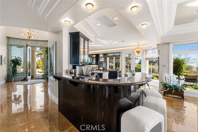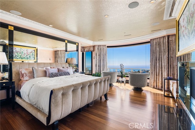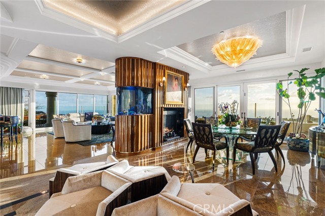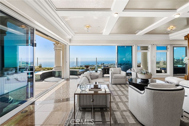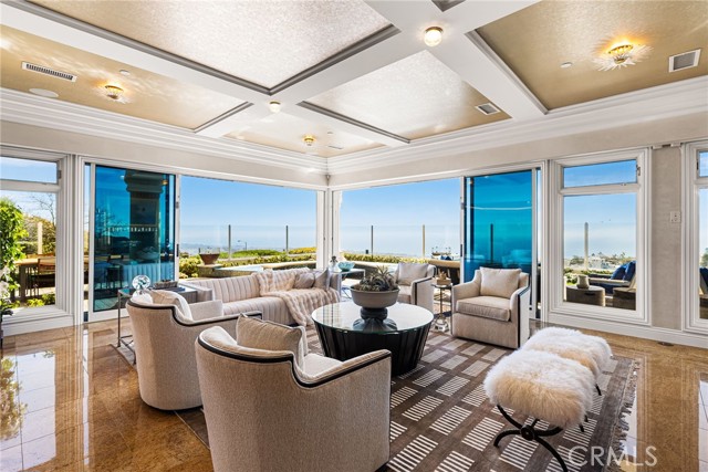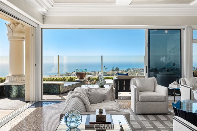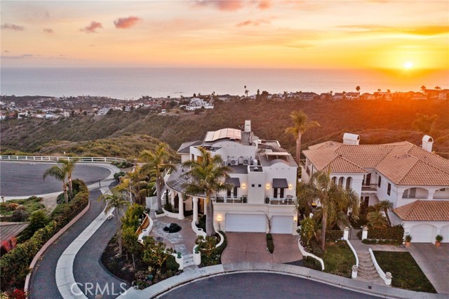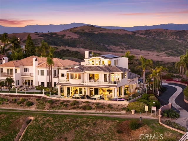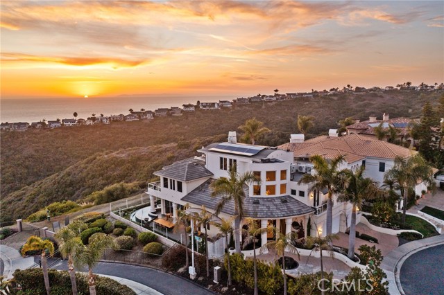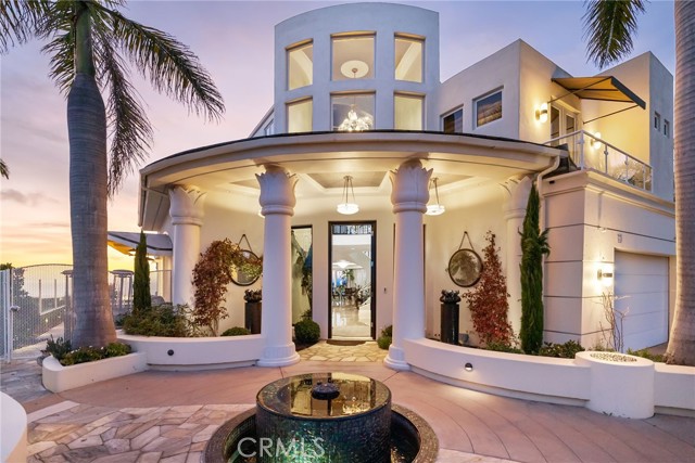 Crowning a spectacular coastal promontory in San Clemente s gated Sea Ridge Estates, this extraordinary, high quality, impeccably maintained, custom estate was extensively renovated ($2 million) and captures unobstructed 360 degree ocean, coastline, Catalina Island, sunset, city lights, canyon and mountain views. Magnificent vistas are complemented by enviable privacy that an end-of-cul-de-sac location with only one direct neighbor affords. First impressions are memorable thanks to contemporary exterior architecture by famed architect Brion Jeanette, accented by artful columns, steel framing, an inviting front courtyard with fountain, and glass entry door. Entertain impressively in a wraparound backyard with breathtaking views, semi-circular vanishing-edge spa, a dining terrace with built-in BBQ island, Trex decking, open-air fire bowls, and heaters recessed above the patio. The generously proportioned interior is an opulent showplace that boasts a 3-story foyer with dramatic circular staircase and elevator leading to all levels. The open-concept main floor caters to formal and casual gatherings with ocean-view dining and Great Room that share a stunning wood-clad partition that offers a flow through fireplace and built-in aquarium. Both rooms open via slide-away walls of glass to the backyard, creating a seamless indoor/outdoor living experience with "jaw-dropping" panoramic views of the blue Pacific. A 300-bottle wine cellar awaits beneath the staircase, and a walk-in wet bar provides a great setting for socializing. The Chef's kitchen features granite countertops, custom cabinetry, cove lighting, top-tier stainless appliances, and a breakfast nook with access to the dining terrace. Polished stone floors, coffered ceilings, designer light fixtures, and custom wall treatments lend an air of sophistication to the residence. 4 en-suite bedrooms with one suite located on the main level, and secondary suites offer mountain views from their second-floor setting. Elegant and Extravagant in size and style, the primary suite embraces vast ocean views that enrich a sitting area with curvilinear floor-to-ceiling window, a private office, exercise room, fireplace and a luxurious stone bath with spa tub, skylight, sauna and custom closet. The top level is all about fun, displaying a game room, view deck, wet bar and bath. Owned solar and newer roof! San Clemente s historic pier, village and beaches are just down the hill. NOTE:5 of the photos are marked as renderingsInterested in this Listing?