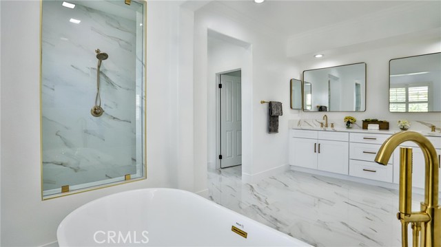 THE MOST GORGEOUS EXECUTIVE HOME IN THE MOST PRESTIGIOUS NEIGHBORHOOD that's nestled in the MOST LUXURIOUS RESORT STYLE HOA COMMUNITY .home is quietly tucked away in seclusive community yet CONVENIENTLY SHORT DISTANCE TO RETAIL STORES, SAN CLEMENTE PIER, BEACH, MALL OUTLETS AND GOLF. ALSO HAVE EXCELLENT UNIFIED SCHOOL DISTRICT.....Step into this beautiful home to feel the dramatic open floor plan with high cathedral ceilings with elegant acoustic accent walls. 1 BEDROOM and FULL BATHROOM DOWNSTAIR. Custom oversize windows welcoming the warm natural, ambient light throughout the beautiful home. Elegant gourmet chef s kitchen with solid wood modern white shaker cabinets, stone white Calacatta quartz on countertop and backsplash, recessed lights, and state of the art cutting edge HIGH END BOSCH appliances. What's more captivating is the oversized master suite with oversized walk in closet and oversized ensuite master bathroom. The luxurious master bathroom has been elegantly designed with exquisite tiles, modern gold fixtures and modern standalone soaking tub and elegant walk in shower. What s even more amazing are private balconies outside the master suite overlooking greenbelt views. Hallway bathrooms are also updated with gorgeous modern elegance, so eye catching and so exquisite. Upstairs the spacious loft can be converted into a 5th bedroom. Luxury modern flooring throughout that looks and feel like wood yet easy to maintain and so so gorgeous. New modern and unique fixtures throughout that enhance the modern theme even more. One can also enjoy beautiful refreshing bar area near family room that opens into the gorgeous kitchen, perfect for gathering. The backyard is so amazing with custom BBQ island, serene water fountain, and amazing view of greenbelt and serene nature. Resort style HOA amenities offers pickleball, pool, picnic area, tennis court, biking trails, hiking trails, club house, recreation room, maintenance grounds. Tons of Parks and tot lot ! Are you looking for a home that's practically new in the most sought out city ? Look no more, this home is the home for you! Put in your offer now!Interested in this Listing?