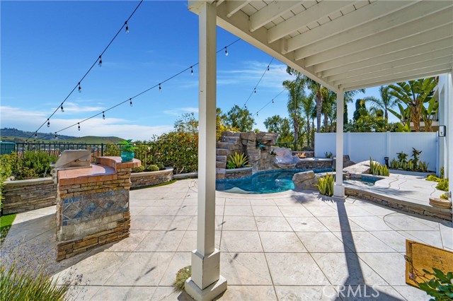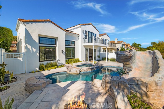 Truly an incredible opportunity to purchase this stunning residence in the prestigious gated community of Pacific Crest. Set on a 5,501 sqft elevated lot offering panoramic views of both hills and canyon this 3,122sqft home boasts modern and contemporary style with 5 bedrooms, 3 baths, custom stone flooring throughout the ground floor, and extremely generous living spaces that include, a spacious main living with double height ceilings and a multitude of windows that bathe the entire residence in natural light. Additionally, the main level offers versatility with a bonus room that could be kids retreat, home gym or office, and a secondary bedroom and ¾ bathroom. The spacious entertainers kitchen truly must be seen to be believed, with oversized center island, marble counter tops and splash backs, a walk-in butler s pantry, Thermador stainless steel appliances including built in refrigerator, double ovens, microwave and steam oven. Contiguous to the kitchen is an informal family/dining area with a modern fireplace complimenting the quality light fixtures. The second level with engineered hardwood floors throughout, including the staircase which overlooks the main living below, offers light and bright secondary bedrooms, a Jack and Jill ¾ bathroom with tiled shower. A most impressive private master suite showcases quality fixtures and fittings, a balcony with peek a boo ocean views and exudes a sense of luxury with an impressive master ensuite featuring a pedestal soaking tub, granite countertops, double vanities, high end lighting and tiled shower with 3 shower heads. The backyard oasis not only offers privacy but is the perfect place for entertaining with professional hardscape and landscaping, a built-in barbeque with bar seating and the piece de resistance the recently resurfaced inground pool, spa, waterfall, slide and firepit! Who needs a day out at Disney when you have your very private oasis right here in your backyard! Additional features include paid for solar panels and the home has had a complete hot & cold re-pipe with PEX piping. Close proximity to the 5 Freeway as well as Downtown San Clemente featuring Del Mar Street and the San Clemente Pier offering exceptional proximity to World Class Beaches, surf breaks, gourmet restaurants, wine bars, and coastal boutiques. Truly an outstanding opportunity!Interested in this Listing?