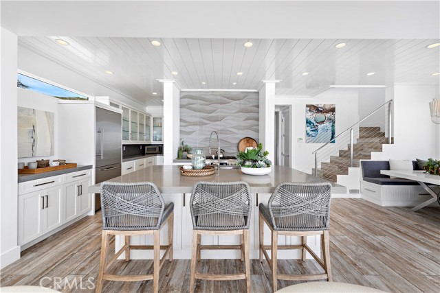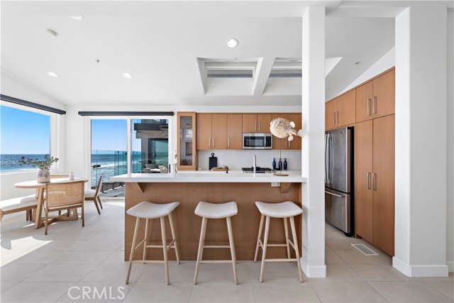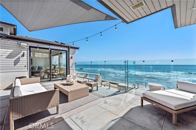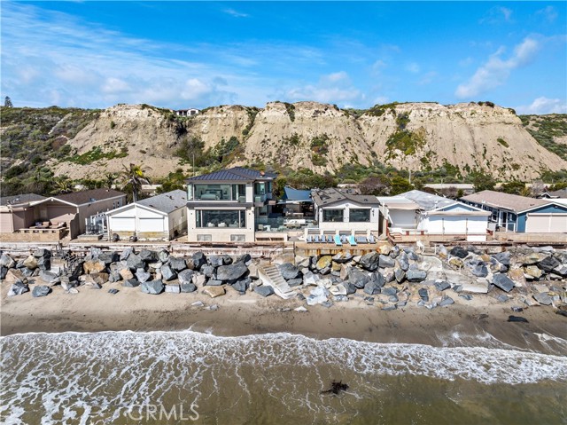 Set on the sand in the exclusive Capistrano Shores community, this rare double homesite offers ultimate California beachfront living, with panoramic whitewater, sunset, coastline, and beach views that stretch from the San Clemente Pier through the Headlands of Dana Point. Contemporary and highly upgraded, the main home provides four bedroom, four bathrooms, and the second home provides three bedrooms, 2 bathrooms. Lush outdoor space is equipped with security doors, tons of seating, a built-in BBQ and bar area, a storage area for all your beach accessories, and a partial glass enclosure for protection from the natural elements. The chic kitchen includes an oversized island, a large breakfast nook, a wet bar, and a full-size wine cooler with ample pantry storage space open to the well-appointed living room with a fireplace and security shutters to form a spectacular great room. Ocean views beyond comparison are throughout the open concept floor plan created by high ceilings, massive seamless windows, and stackable glass doors that lead to a spacious private courtyard. A laundry room, a bonus room, a three-quarter bath, a bedroom, and a powder room, both offering outdoor access, complete the bright and airy main level. The second level offers a large skylight, revealing a primary suite with panoramic ocean views, a windowed spa-like bathroom, a walk-in closet, and a deck with coastline views. Two additional bedrooms, a bathroom, a playroom equipped with a media stage, and built-in toy bins complete the second level. Additional highlights include porcelain tile flooring and wainscotting throughout, designer lighting and plumbing fixtures, electric window shades, security shutters, plantation shutters, multiple ceiling fans, A/C, built-in audio, golf cart parking, and four parking spots with an EV charging. Capistrano Shores is well located, with easy access to downtown San Clemente and its robust dining scene. Moments from scenic beach trails and community parks and located within an hour of most Southern California attractions. Experience the bliss of coastal living with this remarkable beachfront trophy property.Interested in this Listing?