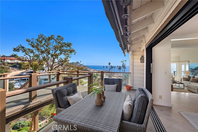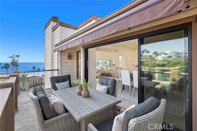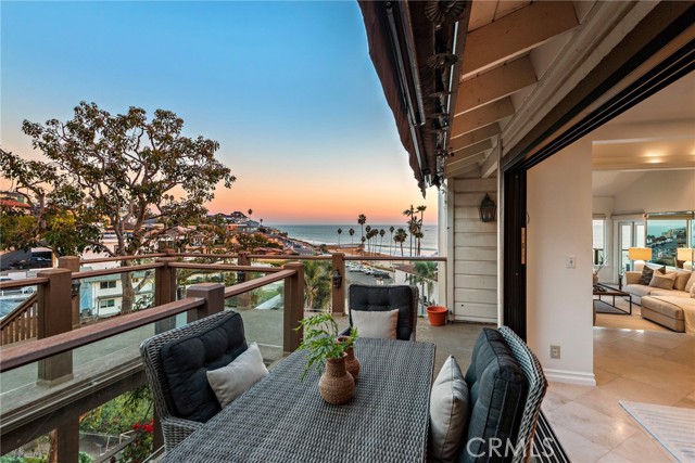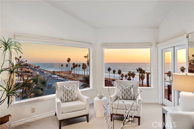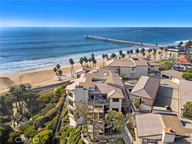 Perched directly above the coastal canyon leading to T-Street beach, this mesmerizing ocean view condo is an extremely rare offering in one of the most exclusive locations in San Clemente. Located down a private cul-de-sac, the iconic 15-unit Driftwood Bluffs community is nestled between historic Ole Hanson estates directly above the gorgeous beaches of San Clemente. This residence is situated on the top floor, offering sweeping ocean views and panoramic sunset vistas along with incredible views of surfers and beachgoers enjoying the whitewater waves directly below. The corner unit and top floor location of this home provides the ultimate in privacy and space. A generous ocean view patio greets you with Fleetwood multi slide doors on either side that open up to the kitchen and the dining room. The living area features massive windows that lead your eye directly to the shimmering ocean views. Open up the French doors to the ocean front patio and take in the pacific breeze. Kitchen features custom cabinetry with ample storage, a dining nook and more ocean views. Wake up to the sound of crashing waves in your spacious primary suite featuring patio access and an ensuite master bath. Secondary bedroom has separate entrance with a small set of stairs down to your spacious, semi-attached private 2 car garage. The 2 car garage is an extremely unique amenity for an ocean front condo. Enjoy a resort-like setting at the community oceanfront pool/spa while watching surfers ride world-class waves below at the San Clemente Pier and T-Street. Only a 5-minute walk down the street to restaurants and cafes, shopping, the beach trail, amazing surfing, and award winning San Clemente beaches. Come live the San Clemente lifestyle today.Interested in this Listing?