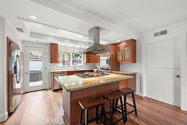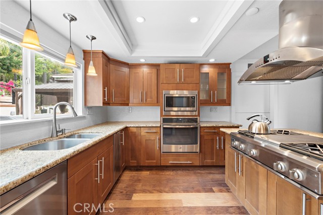 Set in the desirable Chateau Clemente neighborhood, this 3-bedroom, 2.5-bath home offers a blend of timeless architecture and updated comfort just moments from the beach and downtown San Clemente. The layout includes multiple living areas: a formal living room with vaulted ceilings and fireplace, a separate den, and an upstairs loft ideal for a home office or creative space. Rich hardwood flooring runs throughout, creating warmth and continuity. The kitchen includes stone countertops, a center island, and stainless-steel appliances, including a gas cooktop with griddle, oven and microwave, Bosch dishwasher, and two wine fridges. A powder room is conveniently located just off the kitchen. Upstairs, the primary suite opens to a private balcony with peek ocean views. The en suite bath features a large walk-in shower with bench, a Japanese soaking tub, and a dual-sink vanity. Two additional bedrooms share a thoughtfully designed full bath. The backyard is ideal for entertaining with a built-in BBQ, sink, outdoor fridge, two covered patios, gazebo, upper-level sundeck, and water feature. An above-ground spa and lush landscaping complete this peaceful outdoor space. Additional highlights include central A/C, dual-pane windows with coverings, and a tankless water heater. Kitchen refrigerator, washer, dryer, and above-ground spa included. No pets, please.Interested in this Listing?