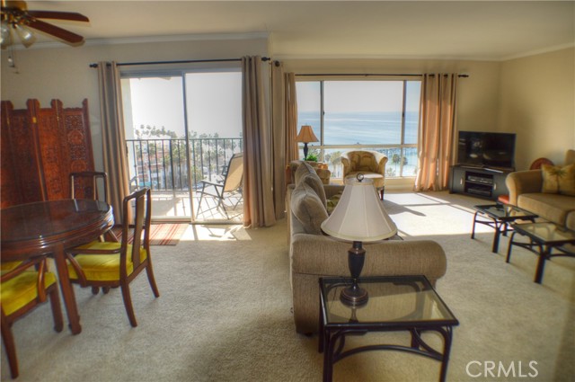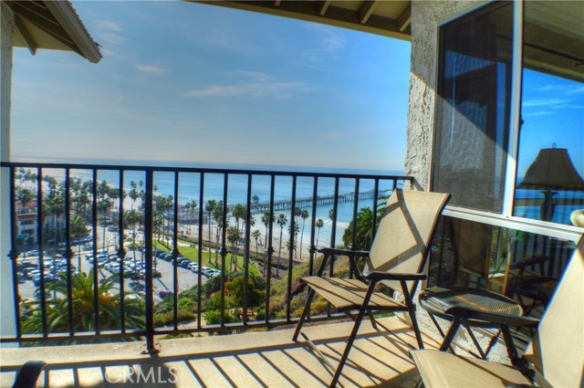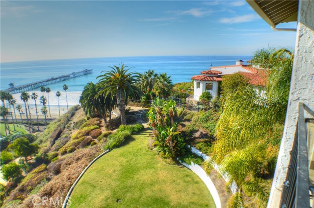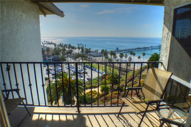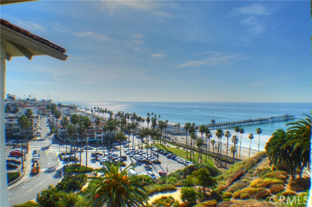 Fully furnished 3 bedroom condo overlooking the pier. Inquire for September onward. Panoramic views from this 4th floor condo of San Clemente Pier & Island, coastline, and San Mateo Rock from the living room, dining room, and private balcony. On site is a community deck perched on the edge of the bluff where you can add to the view Catalina Island, and Dana Point. Walk to downtown from the front gate, or the beach via a private beach access path with outdoor shower . Included in the development are Pool, Spa, Barbecues, and underground parking 1 assigned spot in bottom level and any 1 of the unassigned spots on mid level parking garage . This is a vacation rental 30 day min.