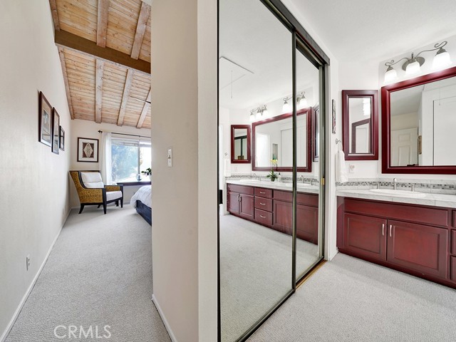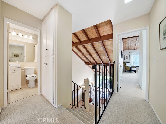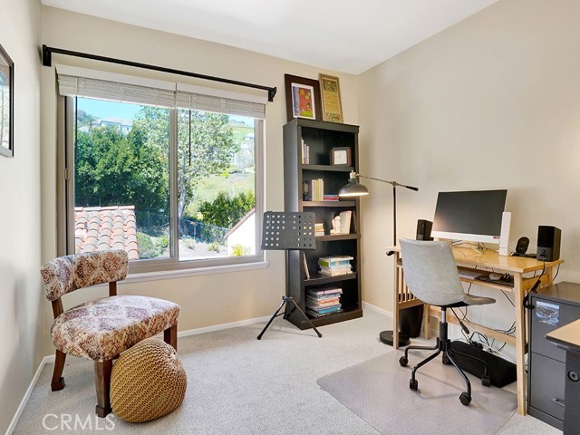 This charming two story home with 3 bedrooms, a bonus room, 2.5 baths & 1,649 square feet of living space is located on the ocean side of the 5 freeway. Located near the top of the Captain s Hill community, peaceful greenbelt, tree and peekaboo hill views may be enjoyed year round from the kitchen sink, family room, rear patio and primary bedroom. Tree lined streets and an elevated position combine to make the home s location one of the quietest in the entire neighborhood. Enter through the front gate to a private courtyard appointed with porcelain tile, drought tolerant plants & a tasteful water feature that create an ideal space to relax and enjoy afternoon sunshine. Pass through the custom front door & you ll notice tumbled travertine flooring throughout the downstairs and freshly painted custom baseboard. A unique architectural feature is the family room s soaring, cathedral tongue & groove ceiling that is accented with exposed wood beams; the space also features a corner fireplace and large sliding glass door that opens to rear patio. Kitchen upgrades include stainless steel appliances, upgraded cabinet doors & hardware, granite countertops, recessed lighting & a large bay window to frame the view. Adjacent to the dining area is a bonus room that is easily converted to a downstairs bedroom or office. The large primary bedroom features a similar cathedral tongue & groove ceiling accented with exposed wood beams as well as a large window to enjoy greenbelt, tree and hillside views. The primary ensuite bath features upgraded cabinet doors, dual vanities, two closets, an upgraded step in shower & large skylight to let in plenty of natural light. Each newly painted secondary bedroom enjoys tree views & the remodeled hall bath completes the upstairs. Additional upgrades include dual paned windows & sliding glass doors, ceiling fans, newer embellished berber carpet through the upstairs, designer paint & an attached two car garage with additional space for storage as well as a large driveway. Community features include walking paths, pool & designated RV parking. This home is less than 3 miles to the beach via the San Juan Creek Trail. The trail also provides access to two parks, Dana Point Harbor, San Juan s newly opened River Street Marketplace, historic Los Rios District, train station, shopping & dining. Come see this home before it's gone!Interested in this Listing?