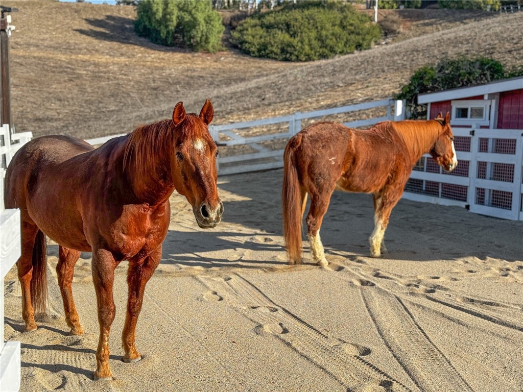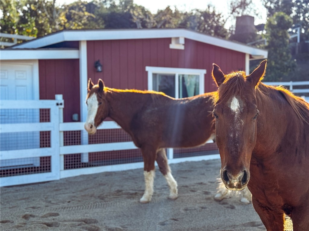 Coveted Equestrian Estate in Mission Hills Ranch. When a California Ranch meets a New York City loft, a unique custom masterpiece is created. An exquisite living experience has been designed into this meticulously maintained home, situated in one of the most Coveted locations in South Orange County. Just minutes from the freeway - the quiet equestrian neighborhood of Mission Hills Ranch awaits. The mostly single-story home on just shy of an acre, located at the end of the Cul-de-sac, with immense privacy and postcard perfect views, has direct access to miles of horse and hiking trails. Designed for those who appreciate both elegance and function, the home s seamless indoor-outdoor flow invites you to enjoy sun-drenched mornings on the terrace, al fresco dining with sunset views, and effortless entertaining in the expansive outdoor living areas. Elements of the home include Polished Concrete and Reclaimed Wood Flooring, custom brickwork and fireplaces, distressed beams and barn doors, exposed venting, a Chef s kitchen with Viking appliances. The state-of-the-art Control4 Home Automation system, includes a security system, ensures modern conveniences at your fingertips. The property includes a private barn for multiple horses, two paddocks, a large custom chicken coop that currently houses 37 chickens and an orchard with avocado, apple, peach, lemon, and orange trees. The equestrian HOA includes a barn with space for multiple horses, a riding ring, round pen and hot walker for use by the homeowners. Escape the ordinary and embrace the tranquility of country living without sacrificing convenience located just minutes from top-rated schools (St. Margaret's and JSerra) and easy access to shopping, restaurants, train station, airport, toll roads, and multiple beaches. Whether you re an equestrian enthusiast, a nature lover, or simply seeking a luxurious escape, this trophy estate invites you to embrace a lifestyle of elegance, tranquility, and endless possibilities.Interested in this Listing?