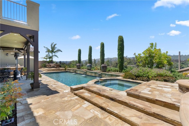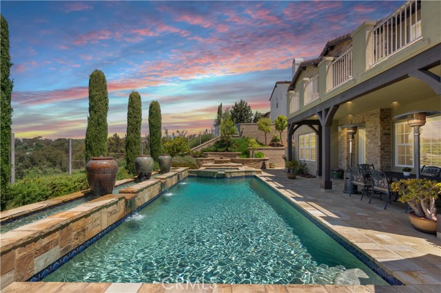 Set on an expansive 12,556 SQFT premium lot in the prestigious gated enclave of Rancho Madrina, this flagship William Lyon estate offers exceptional privacy, breathtaking views of Marbella Country Club, the historic San Juan Capistrano Mission, and rolling hills beyond. A dramatic grand entry welcomes you with soaring ceilings, designer lighting, and dual custom staircases that frame the home s refined interiors. Marble flooring on the main level, recessed lighting throughout, and crown moulding add to the home s timeless appeal. The versatile floor plan features 6 bedrooms and 5.5 bathrooms, including a main-level en-suite guest room and a separate office or sixth bedroom. The spacious formal living and dining areas flow effortlessly into the great room ideal for both intimate gatherings and large-scale entertaining. At the heart of the home, the chef s kitchen impresses with granite countertops, a full travertine backsplash, high-end Wolf appliances, a sub-zero double refrigerator, dual dishwashers, a butler s pantry, and wine/beverage fridge. Custom cabinetry and thoughtful details provide both function and elegance. Upstairs, the luxurious primary suite retreat features a private balcony, a spa-inspired bath with dual vanities, two separate toilets, a walk-through dual-head shower, and a soaking tub. The custom walk-in closet is finished with premium California Closets organization. An oversized laundry room and a generous bonus/media room complete the upper level. Custom built-ins, solid silk window treatments, and plantation shutters elevate every space, while recent upgrades including new carpet and fresh paint ensure move-in-ready comfort. Additional features include surround sound, three fireplaces, and epoxy flooring in the three-car tandem and separate garage. The meticulously landscaped backyard is a private oasis featuring a custom-designed pool and spa with stone accents and water features, multiple fountains, mature citrus and pomegranate trees, and expansive patios and balconies. A built-in BBQ island with sink, beverage fridge, and fire pit creates an entertainer s dream. This is a rare opportunity you don t want to miss it.Interested in this Listing?
