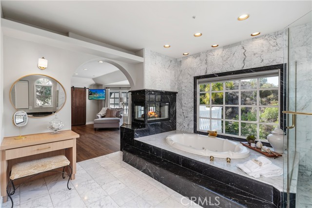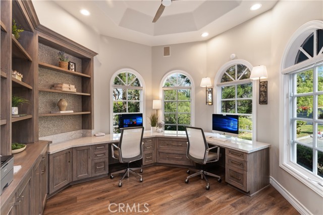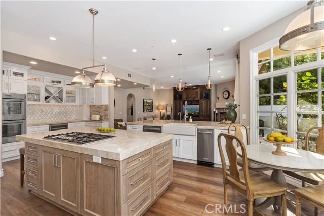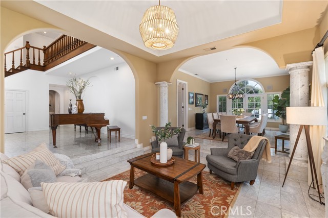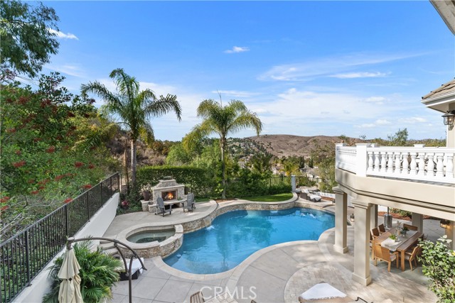 This magnificent Hunt Club view home offers approximately 5,644 square feet of living space with five bedrooms and four and a half bathrooms to include a bright custom downstairs office and spacious great room! With over an acre in property, this home offers privacy and an elegant timeless architectural design that includes an inviting entryway with impressive, coffered ceilings, dramatic staircase and an illuminating crystal chandelier. The long driveway provides ample parking for multiple cars while the backyard offers you an intimate and peaceful setting capturing sunset views! Far reaching view does not disappoint as you enjoy a backyard boasting a tranquil saltwater pool, spa, stone fireplace, and built-in BBQ surrounded by lush tropical landscaping. The backyard also features a covered outdoor living area, perfect for al fresco dining and entertaining guests. Inside, the home offers an abundance of natural light, complemented by charming architectural details. Professionally designed and gourmet inspired kitchen has been gorgeously remodeled in sophisticated soft tones, featuring Taj Mahal countertops, custom cabinetry, upgraded Thermador appliances and dual ovens, creating an exceptional cooking and entertaining space. Stone tile back splashes and accents adorn the kitchen with a large island, extensive counter area with wine refrigerator and drawer microwave. From kitchen to family room the flow is seamless and an inviting marble fireplace which creates a large setting for entertaining and family gatherings. Sunken living room is a cozy retreat off entry and has a Carrera marble fireplace centered with coffered ceilings. Downstairs bedroom with an ensuite is perfect for in-laws or guests for added living flexibility! Primary bedroom is spacious with tall ceilings and a deck that captures sunsets and canyon views! The spa-like suite has Carrera white/black marble shower and tub plus newer cabinetry and black matte marble countertops. Three more en-suited bedrooms encompass the upstairs that also anchors a large and spacious great room and wet bar that has a wraparound side deck to the backyard! The Hunt Club is a guard gated equestrian community that is close to downtown San Juan Capistrano with restaurants/shopping galore. And moments from Dana Pt Harbor and Doheny Beach. Blue Ribbon public schools and well-known private schools of St Margarets and JSerra are nearby, as well. Embrace a Southern Cal. lifestyle with all that this home offers!Interested in this Listing?