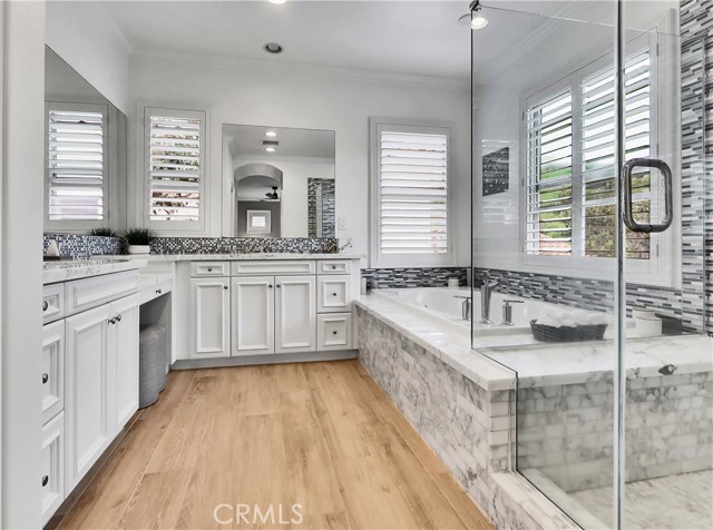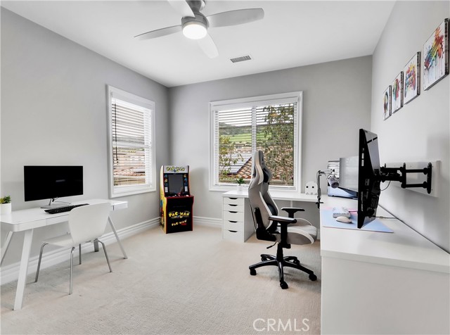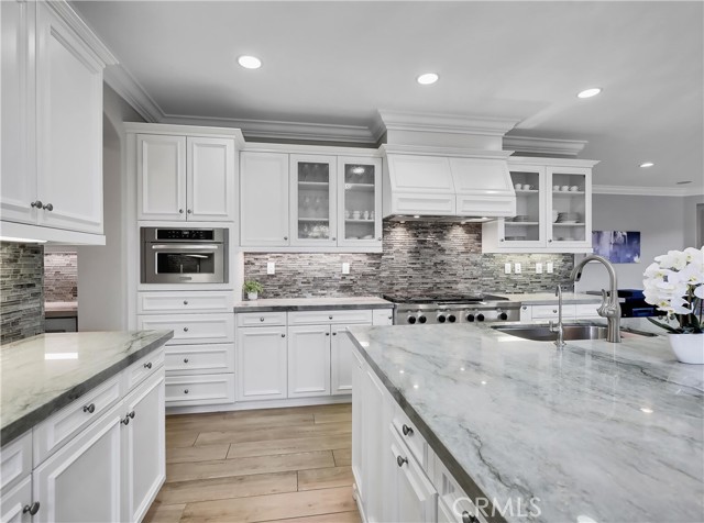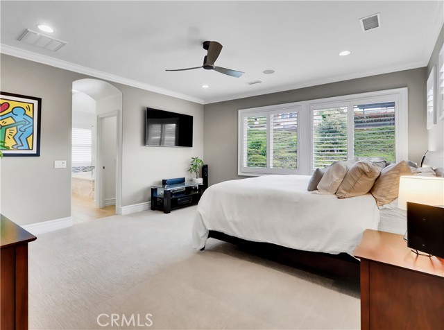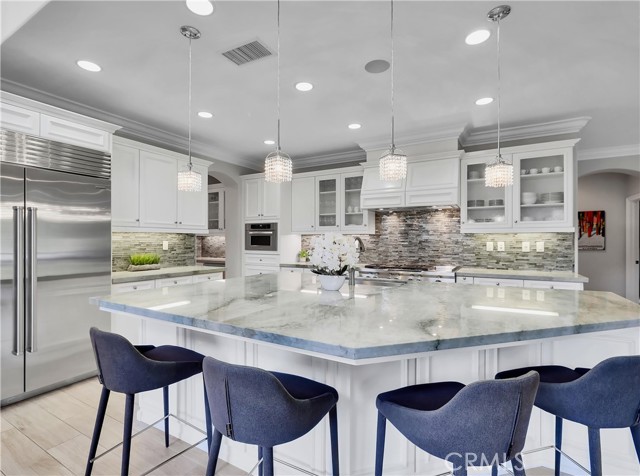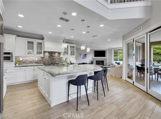 Updated and well-maintained jewel superbly located on a cul-de-sac in the gated Whispering Hills community surrounded by picturesque rolling hills providing a serene setting on a 13,000+ sf premium lot. Boasting an expansive Valinda Residence Two floor plan with flexible living spaces ideal for modern evolving families with room for In-Laws, Home Executives, and growing families! Stately architectural features combined with highly manicured landscaping create an exquisite first impression. Step inside and soak in the light filled interior spaces, dramatic custom woodwork, custom moldings and panels, crown molding, designer paint palette, plantation shutters, custom lighting, built-in audio system, and gorgeous wood-look wide plank tile floors throughout. The spectacular gourmet kitchen boasts sparkling granite countertops, professional grade appliances include Sub Zero Refrigerator and Bosch dishwasher, custom pendant lighting, a huge center island with breakfast bar and is open to the sun-filled breakfast nook and the family room with folding doors opening to the prized Capistrano Room creating an ideal indoor-outdoor living space for entertaining and relaxing with friends and family. Prized main level In-Law bedroom suite and an amazing media room with Dolby Atmos theater sound system with Monitor speakers, Hunter Douglas blackout shades, premium carpet, and granite topped built in storage with wet bar. Travel up the elegant staircase with new stair spindles and freshly painted handrails while you soak in the soaring 2-story sun filled space leading you to the second level. The Primary Bedroom Suite is a peaceful retreat with new carpet, and a luxurious bathroom with granite topped dual vanities, glass tile backsplash, custom tiled soaking tub and walk-in shower, and walk-in closet with full raised panel closet system with built-in organizers. The upstairs level also boasts a bonus space with built-in workstation perfect for teen hangout. Laundry room and 3 guest bedrooms on the second floor; one bedroom has been outfitted as a home Gym with commercial flooring and full-length mirrors. The Capistrano room with fireplace is a tranquil oasis overlooking the large flat usable backyard, with an expansive grassy lawn and updated exterior lighting and landscaping. The garage has Epoxy flooring, built-in cabinets, workbenches, overhead storage, and Monkey Bar shelving. Features include Tesla Charger, new Toto Toilets, and Nest Thermostats on both levels.Interested in this Listing?