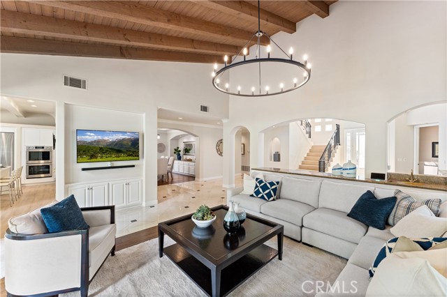 Breathtaking turn-key golf-front estate with sweeping golf views from nearly every corner, packed with new upgrades. Located in the guard-gated Marbella Country Club, this 4,596 sq ft custom home boasts 5 en-suite bedrooms, 5.5 baths, incl a rare, expansive detached casita studio with its own living, dining, sleeping areas, kitchenette, full bath, walk-in closet, and Juliette balcony perfectly positioned across a private gated courtyard for ultimate privacy. The main house features a spacious first-floor en-suite bedroom with courtyard access, ideal as an office or guest suite. Rare 1,005 sq ft 4.5-car garage includes golf cart space, epoxy floors, cabinets, and shelves. New exterior paint, new windows, New modern kitchen with flat-panel cabinets, quartz counters, top-tier appliances, large island with seating, butler s pantry, two walk-in pantries, New flooring, and New AC. Soaring 26-ft wood-beamed ceilings create a bright, open flow. No steps on the first floor. Hardwood flooring throughout the second floor. Enjoy panoramic golf course views from the entry, living, family, kitchen, dining, and first-floor en-suite. Five 9-ft French doors and frameless glass fences seamlessly blend indoor and outdoor living. The primary suite stuns with 270 golf views, an expansive balcony, spa-like bath with jacuzzi tub, double vanities, double showers, and dual large walk-in closets with built-ins. Four of five en-suite bedrooms feature 14-ft ceilings, five large walk-in closets with built-ins, 9-ft solid wood interior doors, three fireplaces, and three balconies. The backyard is an entertainer's dream, extending indoor living outdoors with 180 golf views, frameless glass fences, large patios, retractable awning, lush lawn, vibrant flowers, and a built-in BBQ. Just 5 minutes from prestigious St. Margaret's Episcopal School (Pre-K 12). No Mello Roos, low annual property tax of approx 1.036%. Explore 3D Virtual Tours https://my.matterport.com/show/?m=W8xoMDgRxhH&mls=1 (for main house ) and https://my.matterport.com/show/?m=3V3qQ2QcxjB (for separate Casita studio). Don't miss this golden opportunity to make this your dream home.Interested in this Listing?