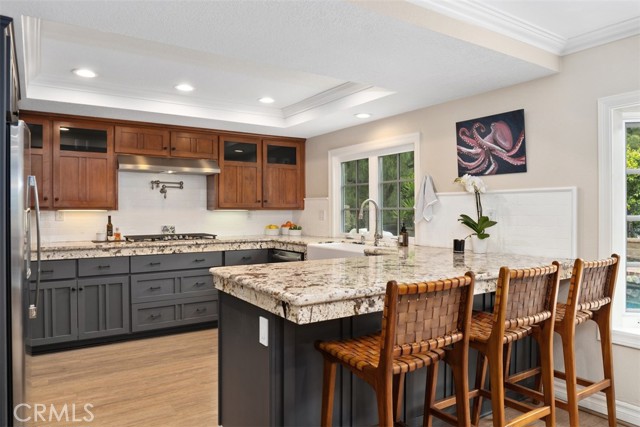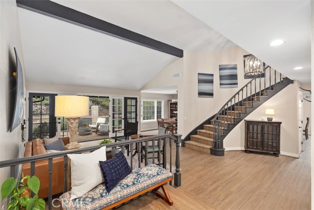 Welcome to your dream home-a stunning Cape Cod-style sanctuary offering 5 spacious bedrooms, a versatile bonus room, and 4 full baths, all set on a private, desirable lot at the end of a cul-de-sac, on the most elevated location in the neighborhood. From the moment you enter the gated front courtyard, you'll love the tranquil fountain, lush landscaping, and custom Dutch door that opens into an inviting entryway. The living room is full of charm and functionality, with tall ceilings and French doors that lead to a serene courtyard area with a TV and water feature. The light-filled kitchen has stainless steel appliances, a farmhouse sink, granite countertops, and an inviting bar area, perfect for casual dining or entertaining. Flowing seamlessly into the family room, this space has tons of natural light with views of the lush backyard and sparkling pool. The family room is anchored by a cozy floor-to-ceiling white brick fireplace with a reclaimed wood mantle and opens onto the covered outdoor dining and entertaining area. Step into the serene wrap-around backyard, designed for relaxation and entertaining. Highlights include a built-in fire pit, pool and spa, multiple seating areas, and thoughtfully curated landscaping with succulents, beach grasses, eco-friendly pea gravel, and Malibu lighting. The main floor is perfectly designed for convenience and comfort, featuring two bedrooms, two full baths, a laundry area fit for dual full-size stackable washers and dryers, and a dramatic staircase. Upstairs, the luxurious primary suite offers a cozy sitting area with fireplace, abundant natural light, a large primary bath, a walk-in closet, and breathtaking views of the hills. The second floor also includes two additional bedrooms, two full baths, and a large bonus room with a TV viewing area, pool table, natural wood tongue-and-groove paneling, and its own mini-split heating and AC system. Additional features of this meticulous home include luxury vinyl plank flooring throughout, a whole-house PEX re-piping, a water filtration system, a Sonos sound system, a Vivint security system, and a professionally installed multi-access point network for seamless connectivity indoors and out. With no HOA fees, this home is located near top-rated schools, charming downtown San Juan Capistrano, and the vibrant new River Street. This home blends timeless architectural elegance with modern convenience, offering a luxurious lifestyle and endless possibilities for creating memories.Interested in this Listing?