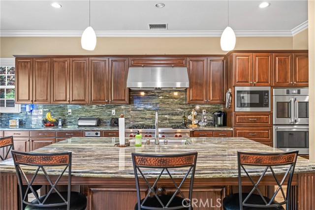 Situated on a picturesque neighborhood street, in the highly coveted gated community of Rancho Madrina which is central to everything in San Juan Capistrano, is this exceptional home. Starting with sunning curb appeal, including updated hardscape, mature landscaping and dramatic professional lighting, enter to a grand yet welcoming foyer which certainly sets the tone for what guests can expect. On each side of the entry are two living areas with one situated as a formal sitting room with a fireplace and the other an office with views out to an interior portico. Next is the formal dining room which is anchored by a second warm and inviting hearth, features a convenient built-in butter s station, a butler s pantry hallway to the kitchen and French doors out to the interior portico sitting area. Beyond is the great room which has great space and light and doors out to the entertainer s patio deck. Showcasing a massive central island with bar seating, this kitchen has it all! Stainless steel appliances, recessed, task and pendant lighting, an abundance of prep and storage space, an eat-in nook with counters and cabinets that extend from the kitchen and a sliding door out the patio. Adjacent is a stunning family room which has space enough for even the largest comfy sectional and has great light from large patio view windows. A guest bath and a convenient inside laundry room completes the lower level. Upstairs is anchored by a large second relaxing family room and has 4 ensuite bedrooms starting with the primary suite which has a fireplace and a Juliette balcony that overlooks the yard. The spa-like ensuite features a relaxing soaking tub, step in shower, privacy water closet door, dual vanities, a separate seated vanity station and a walk-in closet. 3 additional ensuite bedrooms complete the interior spaces. Outside is a spacious entertainer s deck with a built-in BBQ, a fire feature wall, room for multiple seating areas, a relaxing spool with waterfall and a large turf play area. A unique central motor court has 3 garage spaces and with the driveway there is room to park a multitude of cars. Located minutes from Mission San Juan Capistrano, and downtown SJC with countless great restaurants, entertainment options, a variety of great shopping, and it is not far the beach, everything living in South OC has to offer and has easy access to great public and private schools. This is the one. Welcome Home.Interested in this Listing?